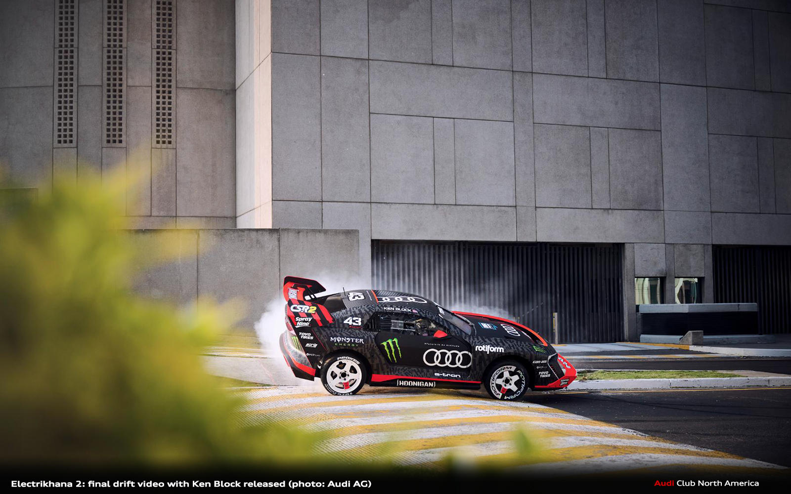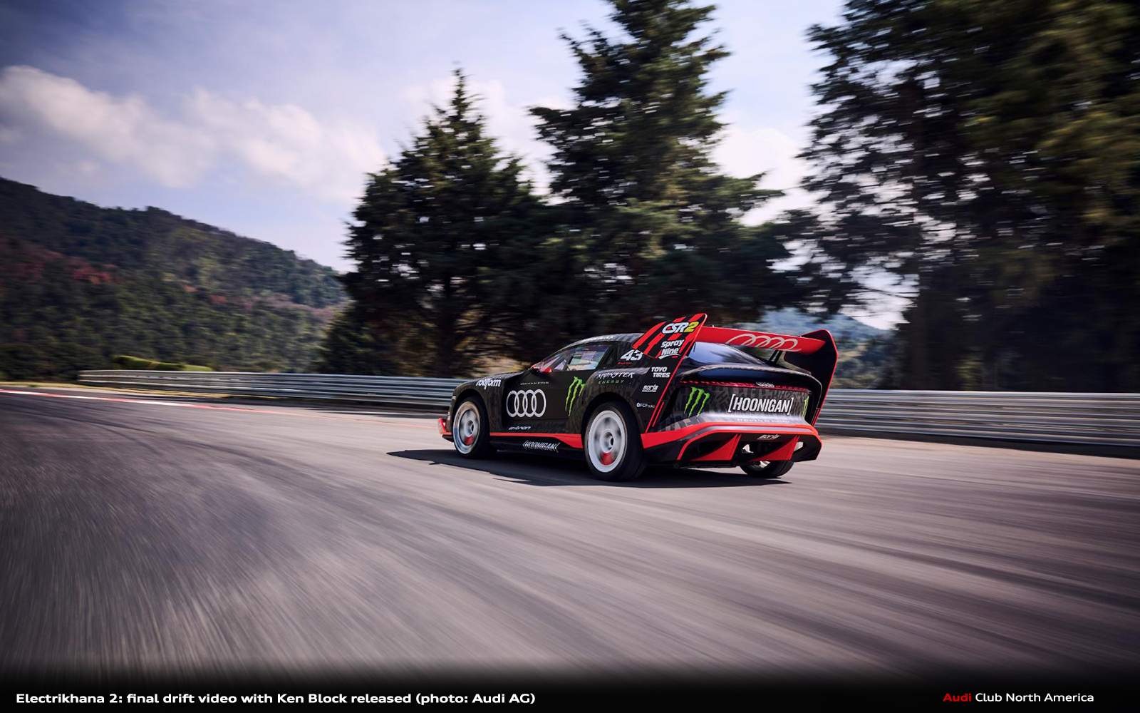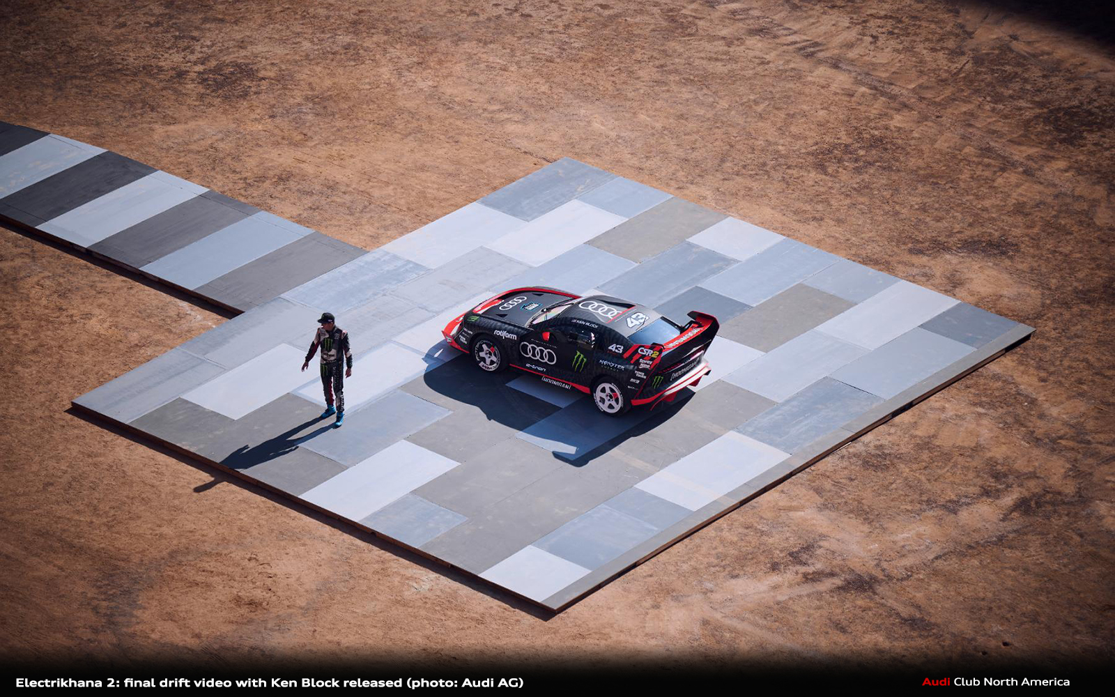 ‘Electrikhana 2’ was filmed with the Audi S1 Hoonitron in November 2022 – just a few weeks before the snowmobile accident in which Ken Block died at the age of 55. It was a matter close to the heart of the American’s family to complete and release the film in his memory.