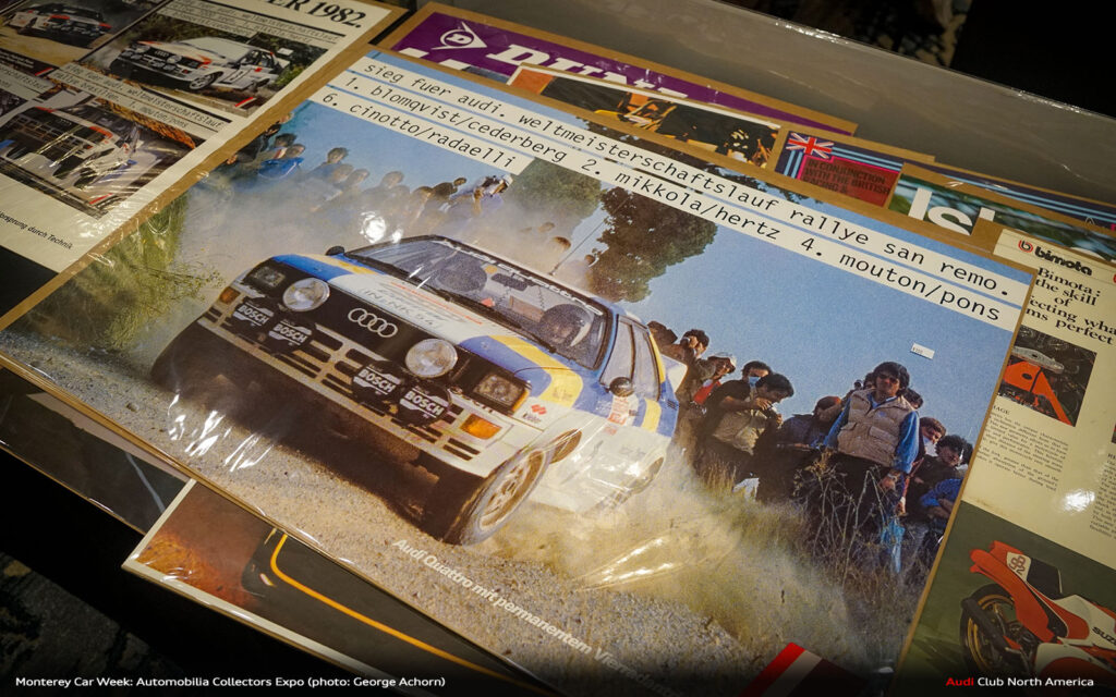 As for Audi brand merch specifically, there was an interesting mix. Scale models from the likes of Model Citizen are always a favorite. More unexpected were some rare vintage Audi Sport rally posters we hadn’t seen before. Other staples like books, driving gloves, rally lights and more will definitely caught the eye and tempted a purchase.