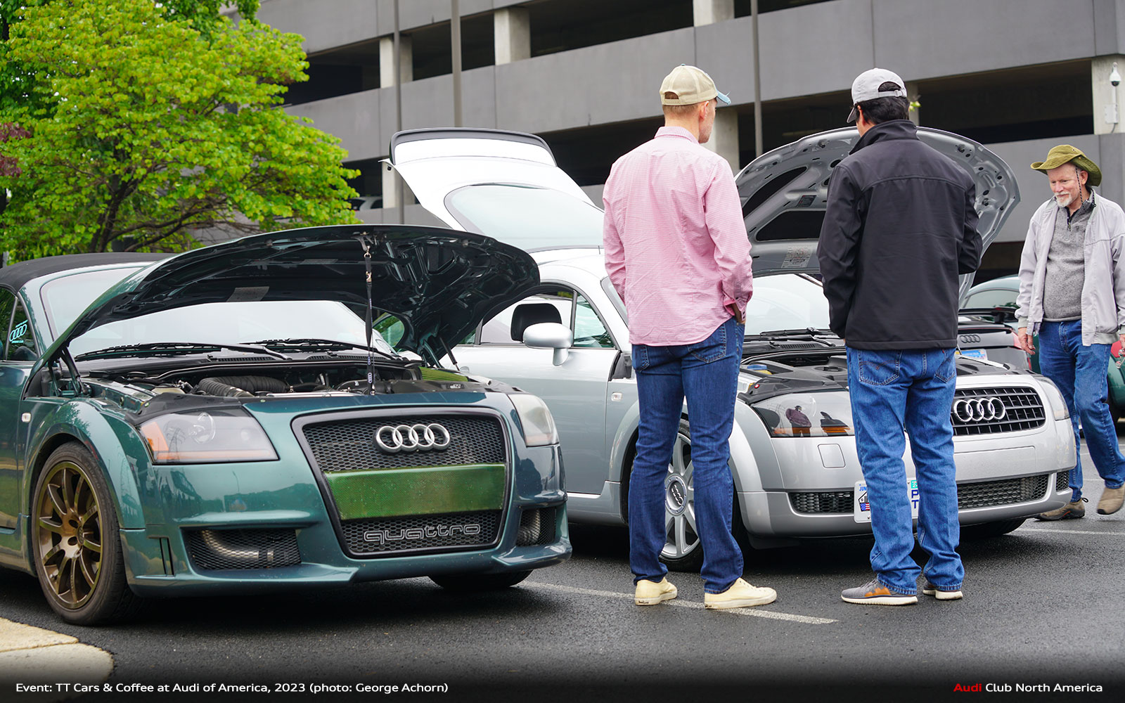 Earlier this year, Audi of America hosted a TT Cars & Coffee at its headquarters in Herndon, Virginia. The event was a celebration of the 25 years of TT and a sendoff for the final year of the model. While the weather was a bit to be desired, the turnout was not. There were over 35 TTs across all generations in attendance as well as many other Audi models. On display at the entrance was one of each generation.