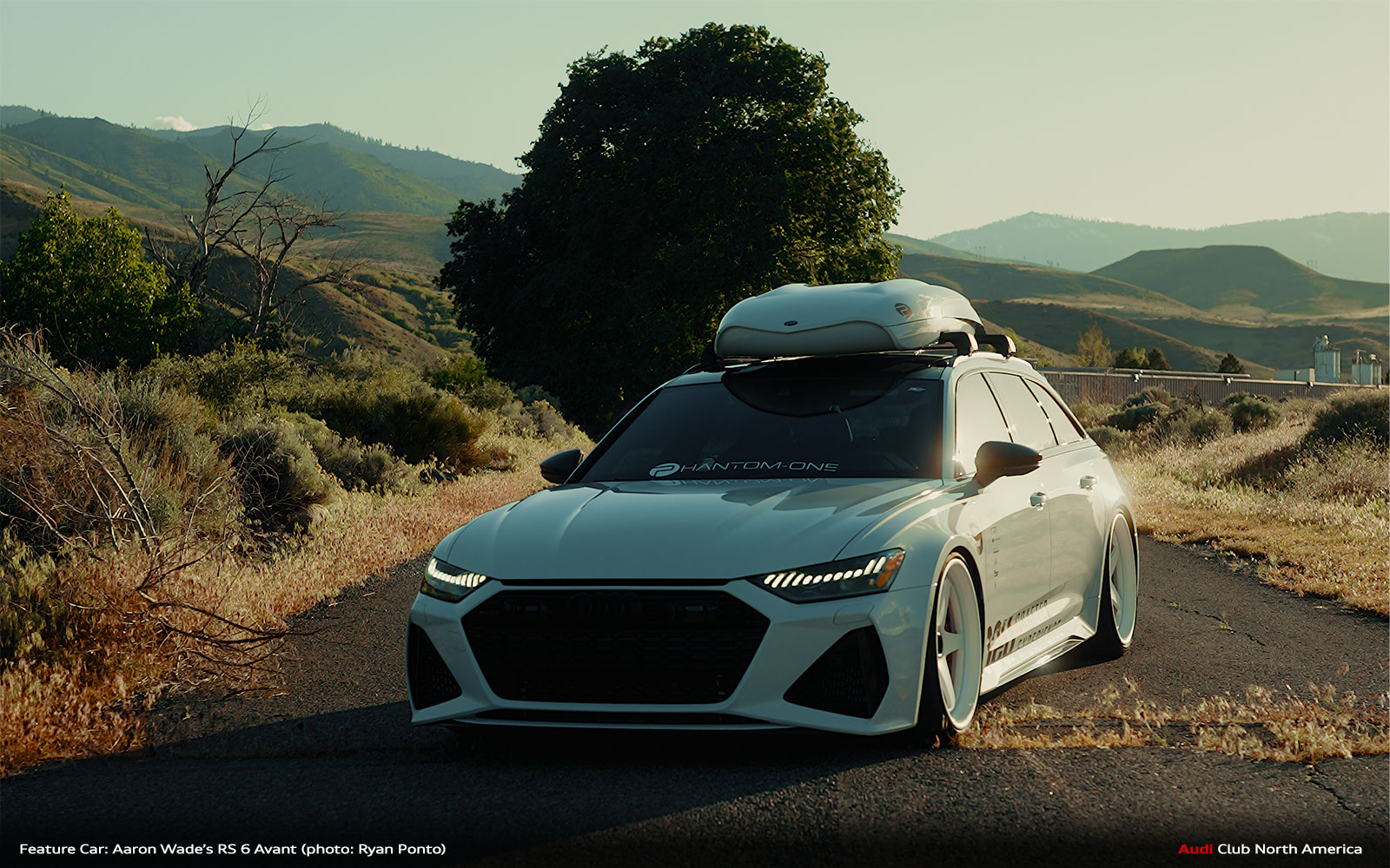 Wade absolutely loves his RS 6 Avant, optioned with the Driver Assistance package, carbon optics and the carbon ceramic brakes. So far, he’s swapped out the exhaust for a custom cat-back from Illegal Speed Shop, added a carbon fiber steering wheel, and some beautiful AL13 wheels paired with the CETE lowering module for a more aggressive stance. And to top it off… literally, he installed a PhantomOne R Carbon Roofbox that was color-matched to the car.