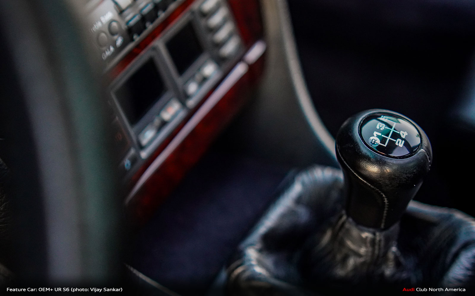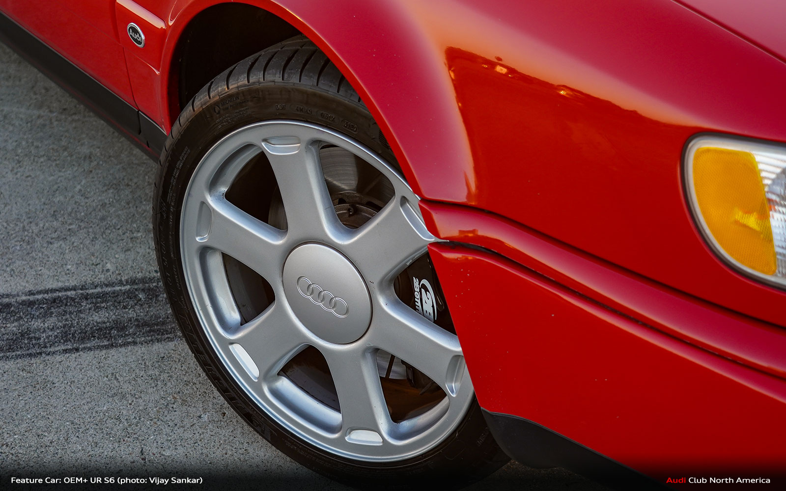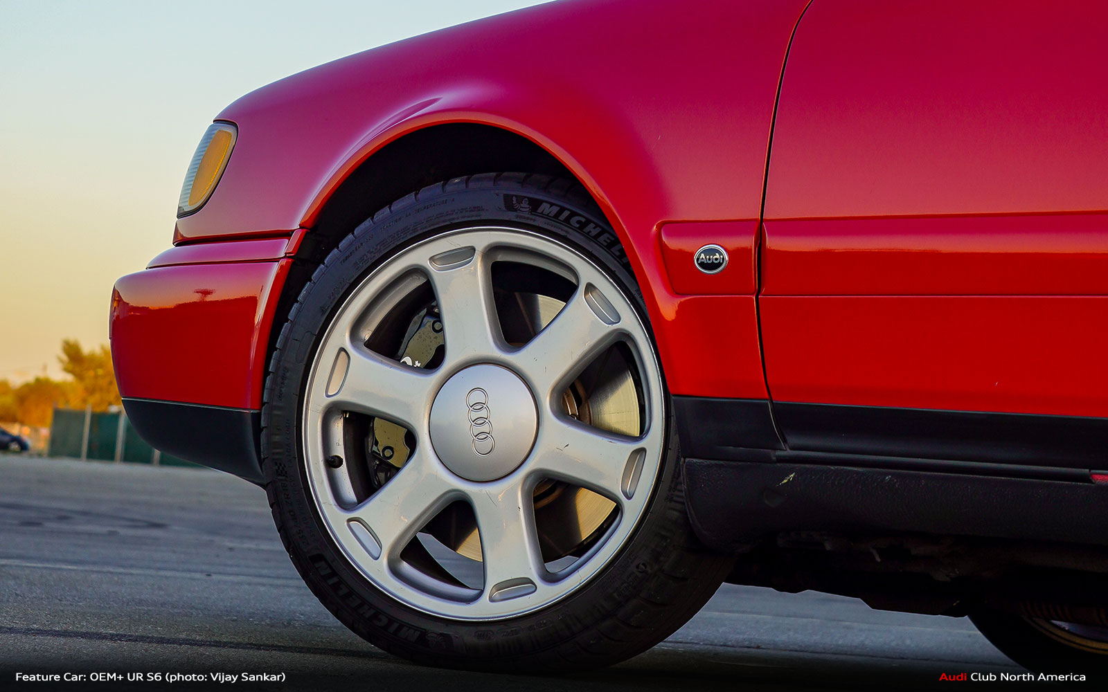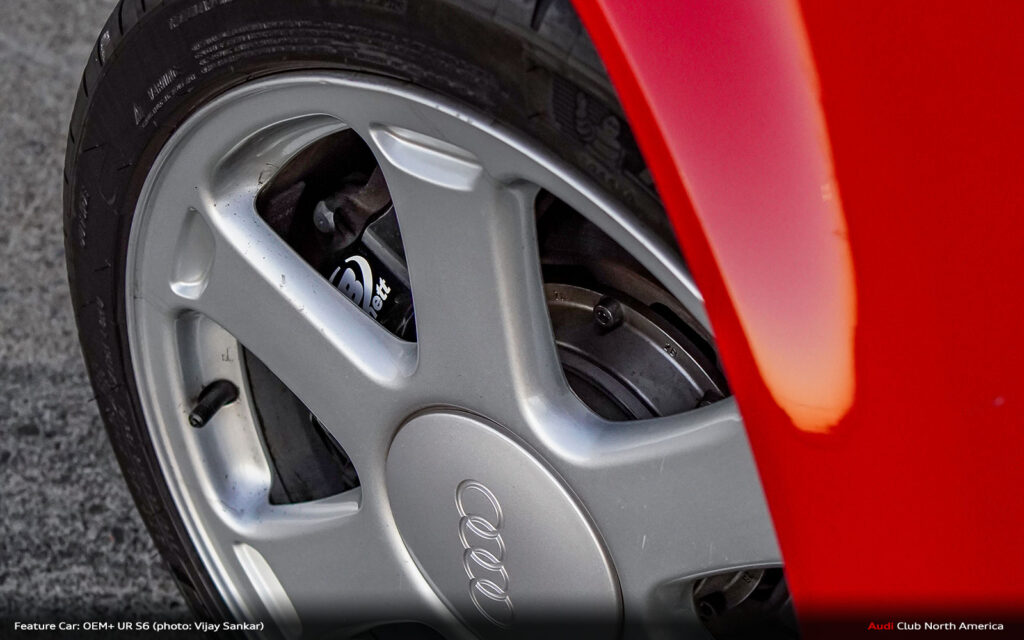 Phase 1 began with the installation of a new clutch paired with a short shift kit and six-piston Brembo brakes paired with 350 mm slotted rotors. Larger rolling stock was necessary to clear those new Brembos and for that, Josh dipped into the European partsbin, sourcing a set of 18-inch early S8 wheels, a design never sold in America but identical to the 16-inch Avus wheels fitted new to the S6. Wrapped in Michelin Pilot 4S tires, they may very well be the perfect OEM+ upgrade for an ur S6.