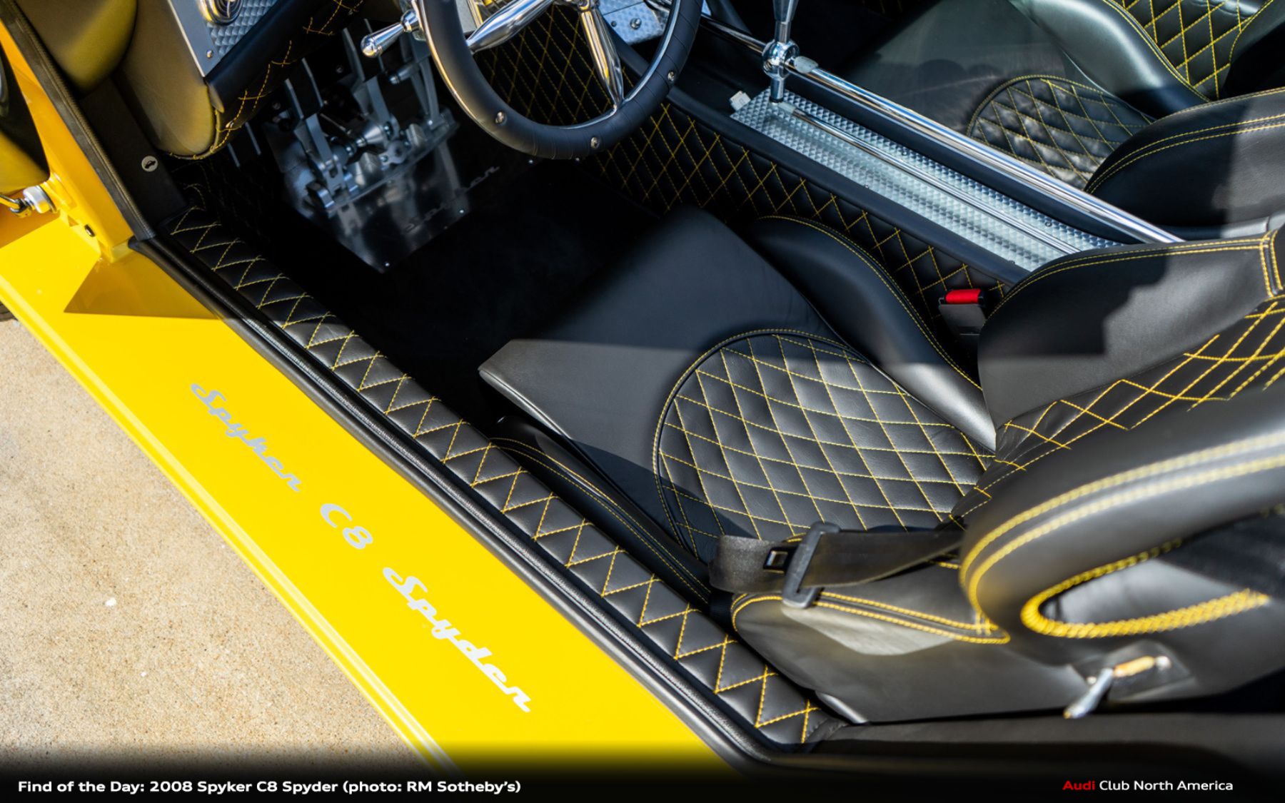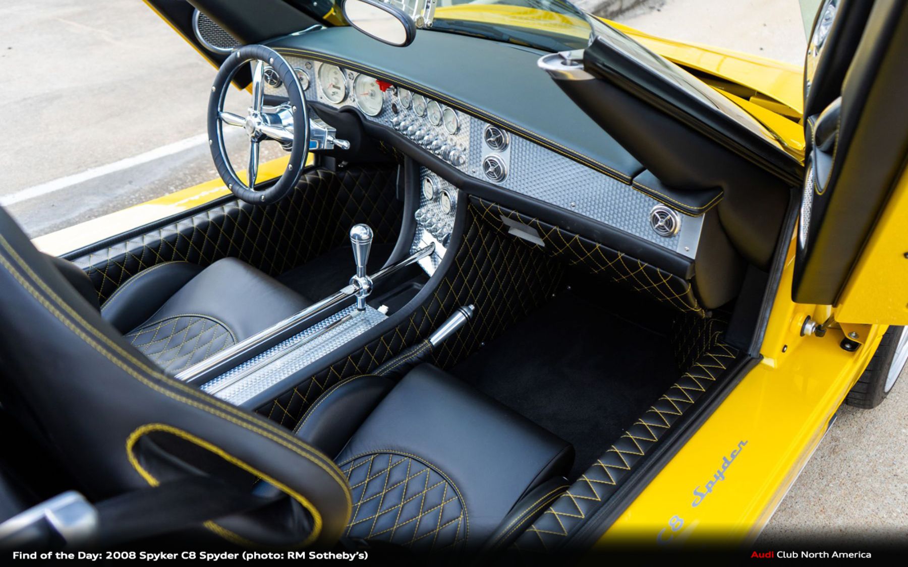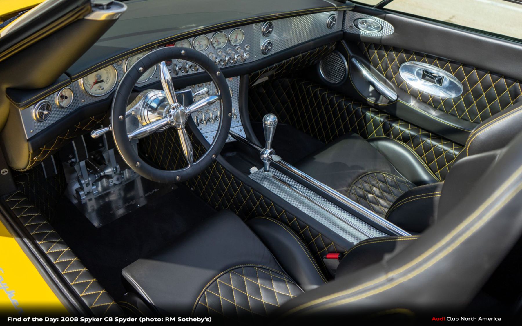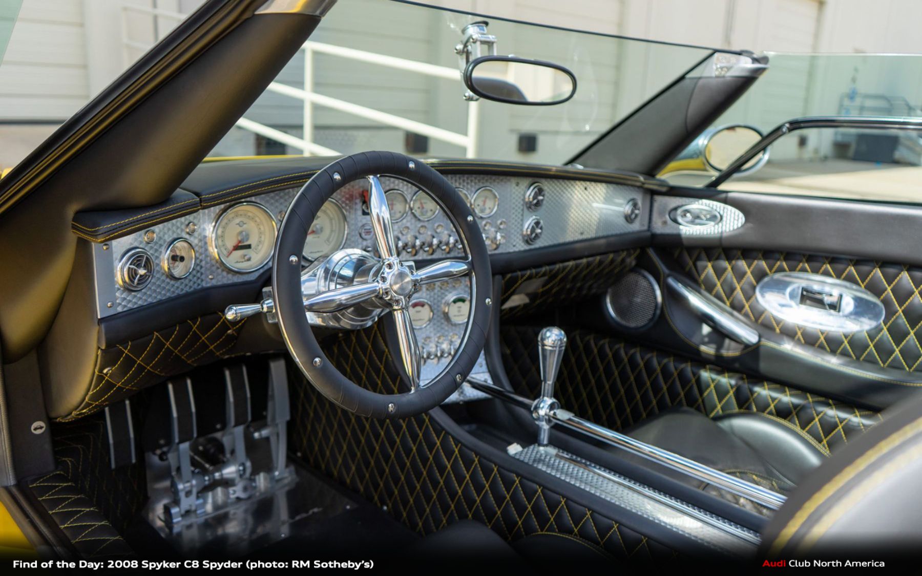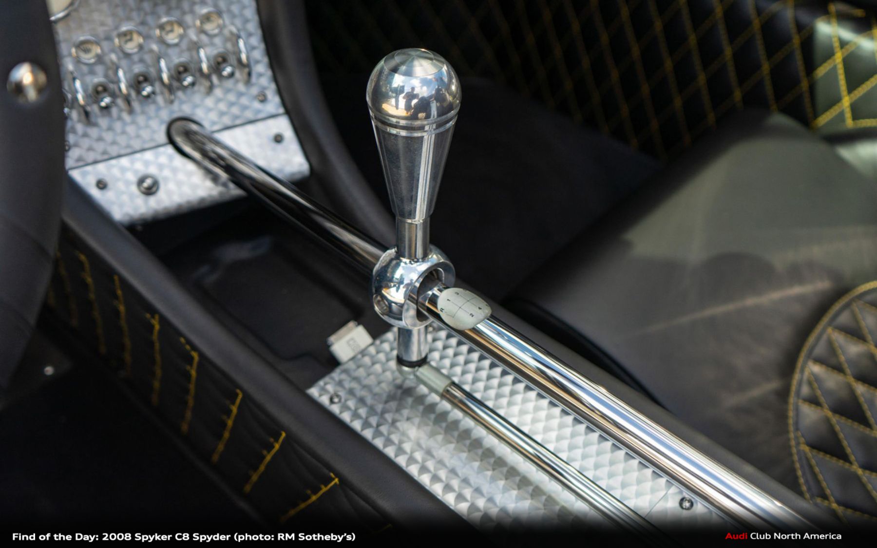 I’ve always loved the interior of this car; so many details and that shifter is a work of art. This is at the RM Sotheby’s auction in Phoenix. It’s going on the block this Thursday and it’s estimated to go between $425,000 to $450,000. If you have never been to one of these auctions, it’s a pretty cool fast-paced environment. They have preview days where you can get close to the cars and ogle the fantastic machinery up for bid. The auctions themselves are a sight to see. So even if you aren’t in the market for one of these cars, go anyway…it’s memorable. You can find this 2008 Spyker C8 Spyder on RM Sotheby’s website HERE.