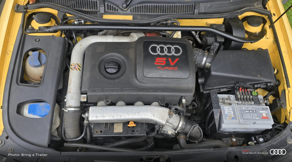 The car shows 131K miles, but the original engine is no longer part of the program. The engine and turbo from a 2001 Audi TT 225 lie under the hood. That should give the car plenty of pep. But all is not perfect.