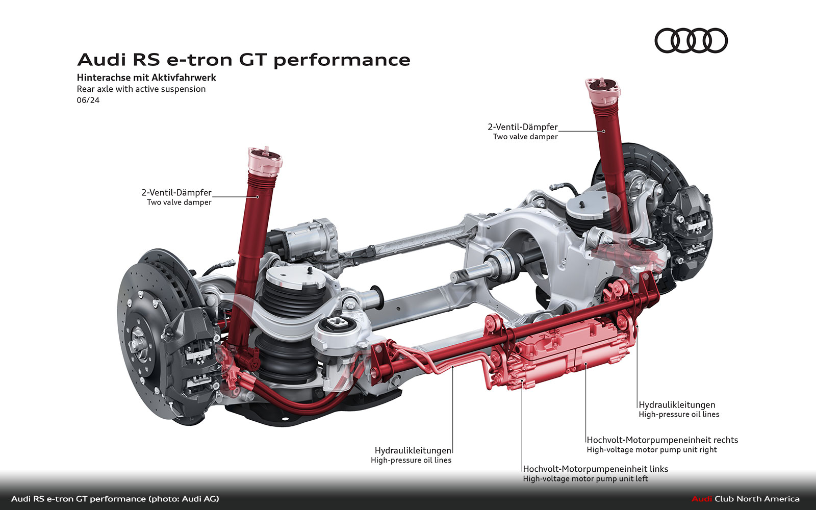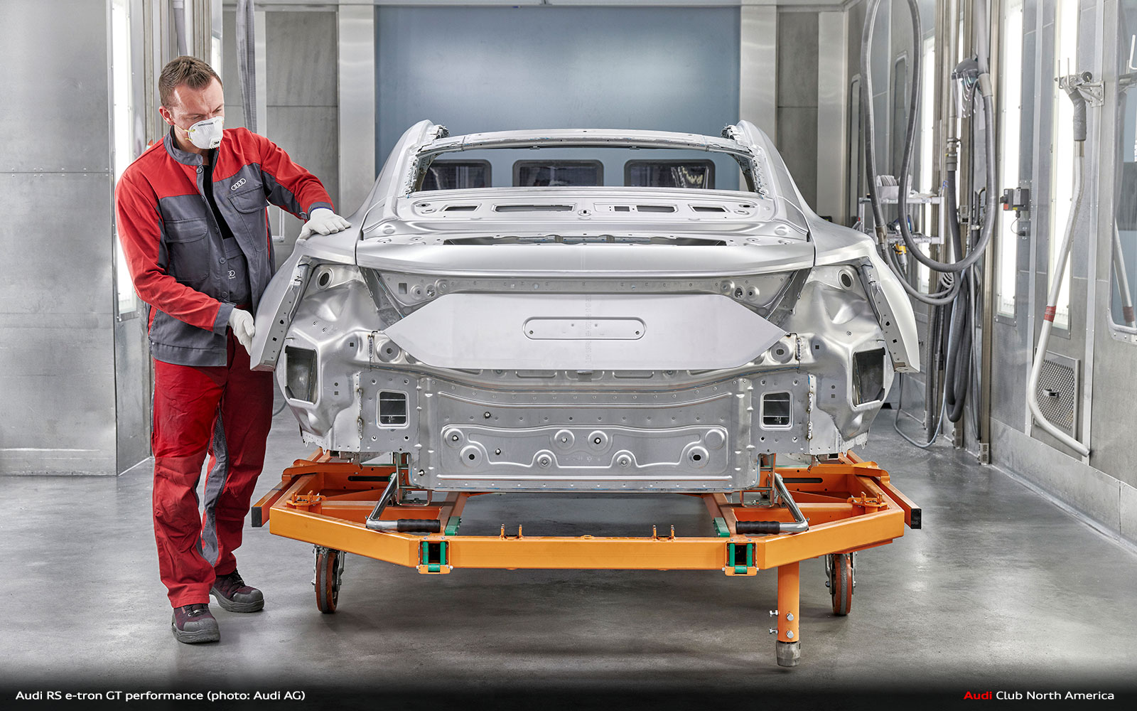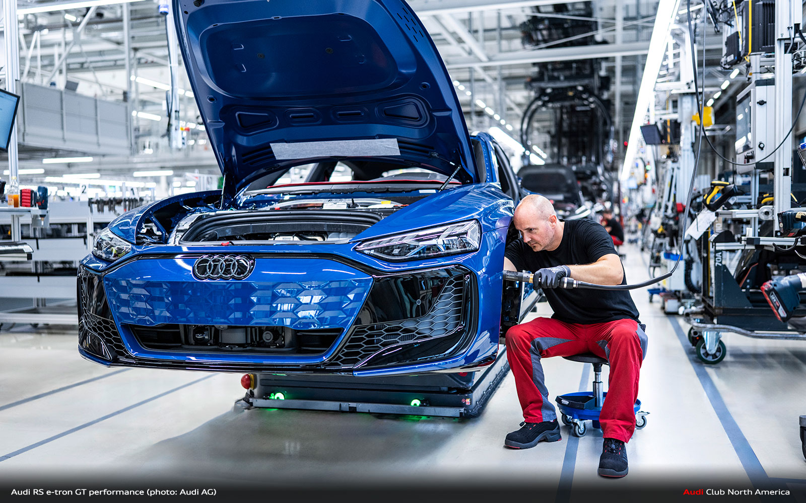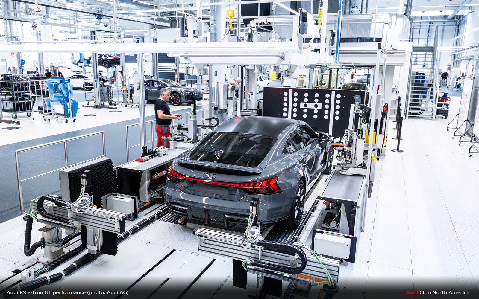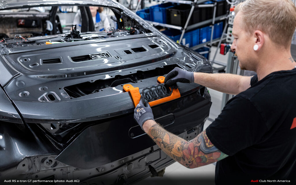The new RS e-tron GT performance2 is also being built at the Audi Sport GmbH production facility at Audi’s Neckarsulm site. At Böllinger Höfe, specially tailored new technologies are used, but the final pass is left to experienced employees with sharp eyes and steady hands. The approximately 500 employees at the Böllinger Höfe production facility received comprehensive, advanced training for the new e-tron GT model family. Before the start of production, some processes and systems were adapted to enable the installation of the new product highlights. For example, mounting the innovative active suspension was integrated as a new step of installation preparation.