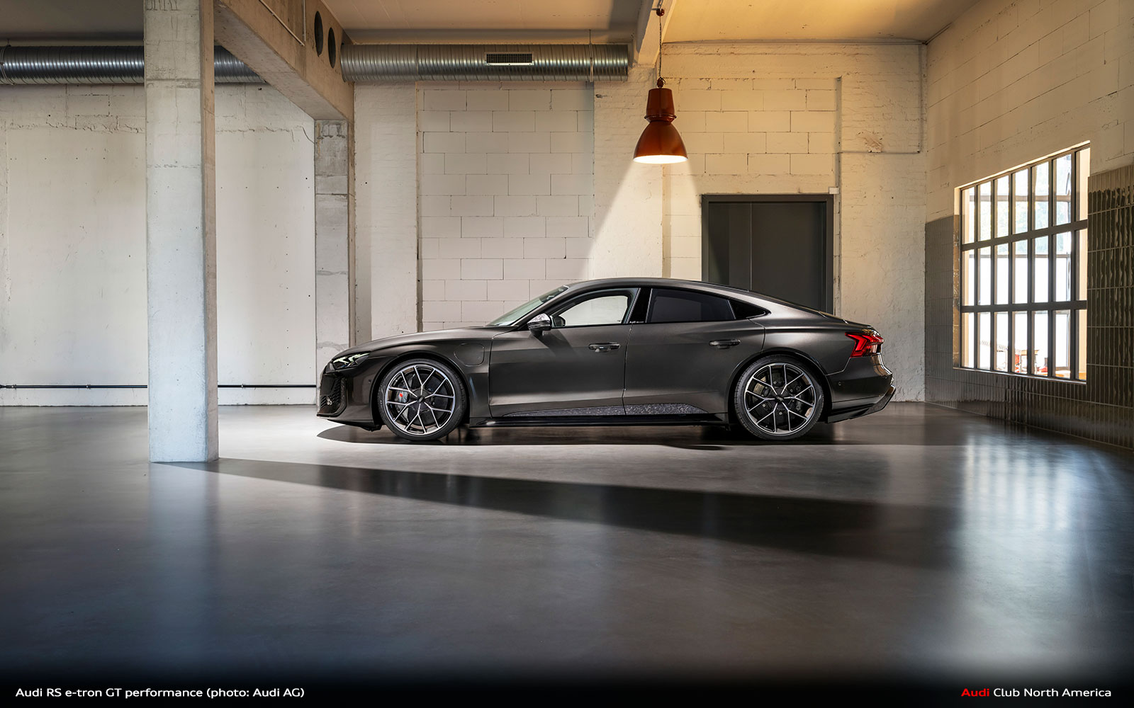 With the Audi RS e-tron GT performance2, Audi is debuting its first fully electric RS performance model. The four-door coupé demonstrates bundled technical expertise – and Audi’s passion for details. Powerful, sporty, and confident, it reflects the brand’s high standards for developing and building cars. The RS e-tron GT performance2 is the dynamic flagship for electric mobility at Audi.