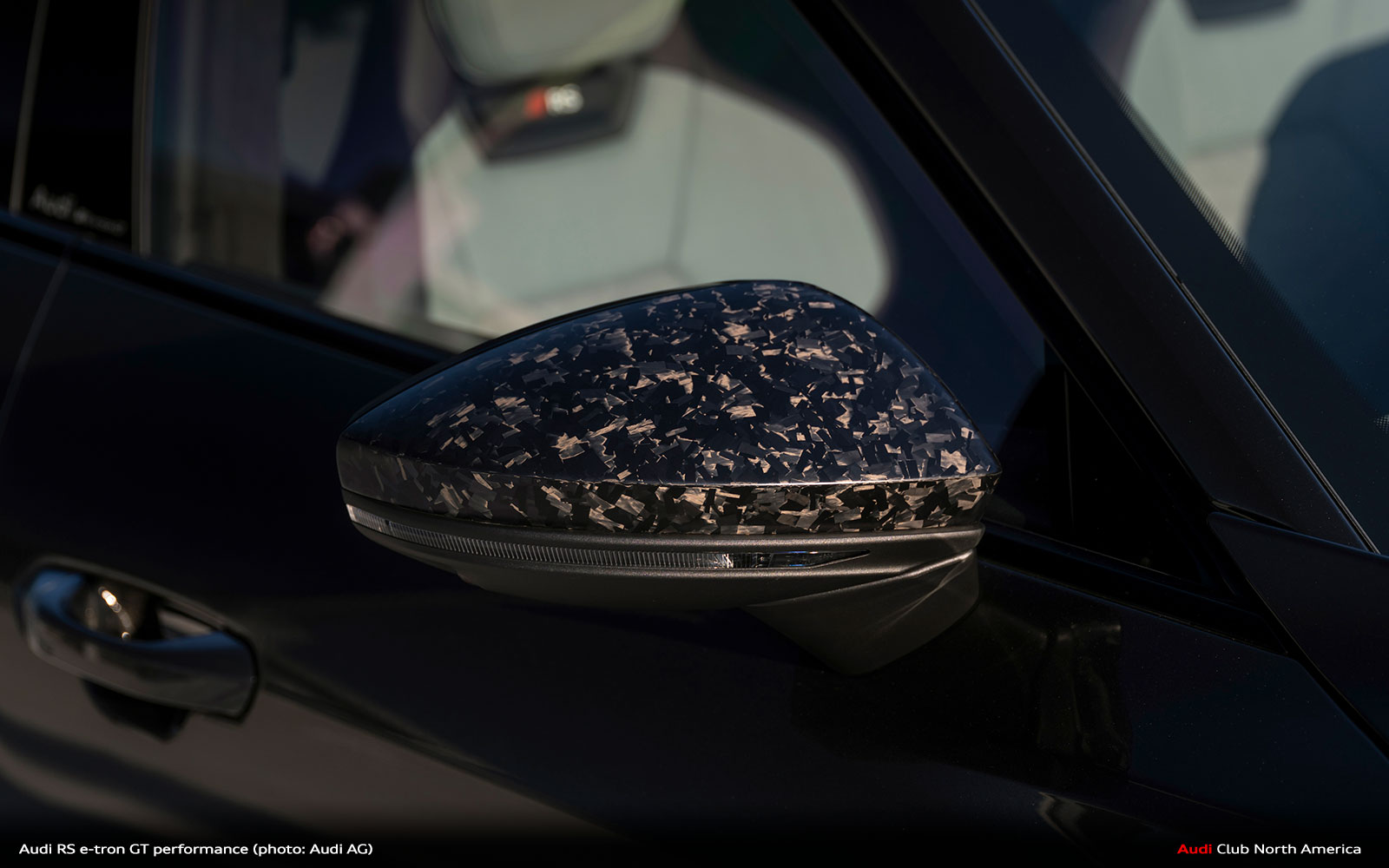 “As an absolute design statement, every detail of the RS e-tron GT performance2 has been perfectly coordinated, from the carbon roof to the seat belts, from the exterior to the interior. It is an RS e-tron GT all the way down. The way that we use the material, carbon has no directionality; it looks different from every perspective,” says Christopher Kröner, the Color & Trim Designer responsible for this innovation at Audi. “This is crucial because our Gran Turismo is like a sculpture that can be approached from all sides, so it has to have that effect all around. Depending on the lighting, it appears agile at times, discreet and restrained at others. What sounds like a contradiction is the perfect balance between sportiness and elegance. ”