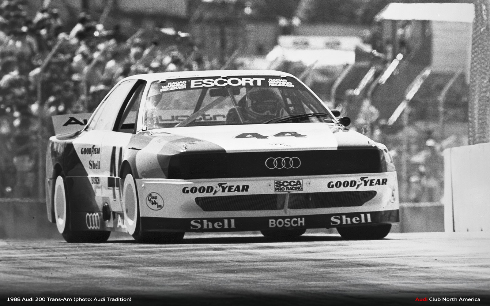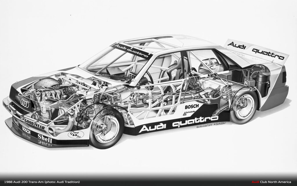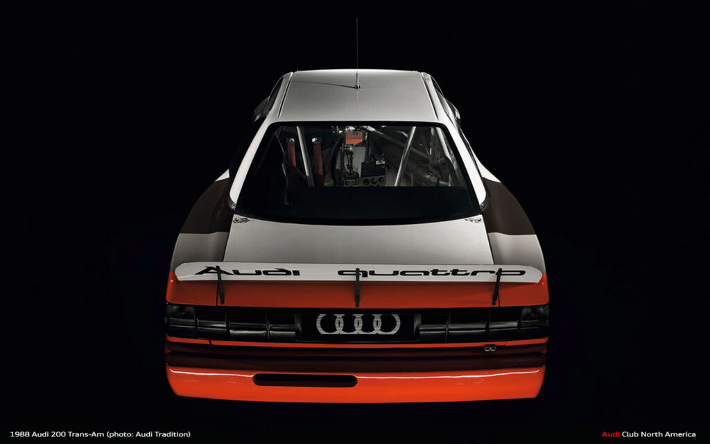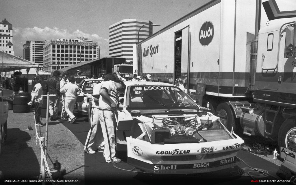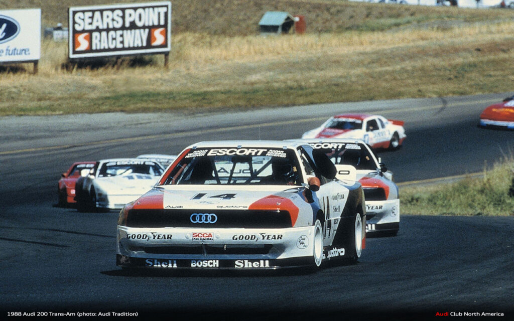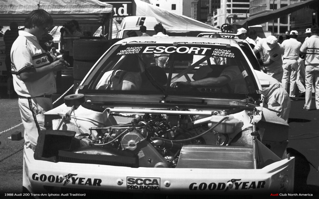 All the what ifs aside, that’s why we run the races. The fastest qualifier doesn’t always win. Things break and drivers make mistakes. Fortunately for Audi in 1988, excellent engineering meant things broke less and drivers Haywood, Stuck and Rohrl made fewer mistakes. Group 44 maximized the Audi 200’s quattro drive advantage to secure the Manufacturer’s championship and Haywood’s consistently fast, smart driving style earned him the Driver’s title. Bill Oursler’s T-A season recap in National Speed Sport News stated, 1988 “will always be remembered as the year four-wheel-drive came of age in pavement road racing….” We couldn’t agree more.