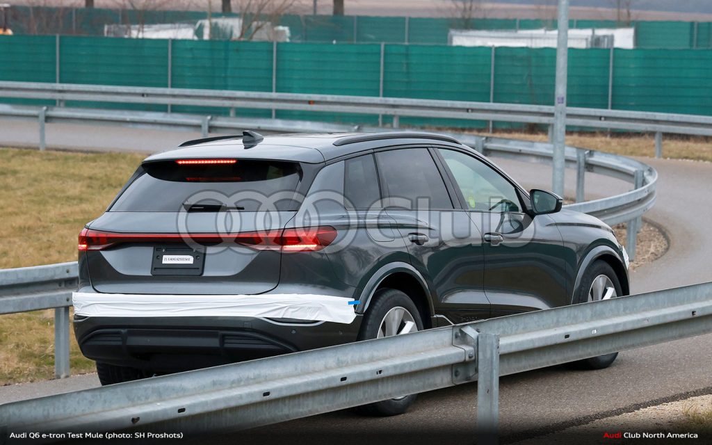 This latest set of Q6 e-tron test mule photos shows a largely undisguised Q6 e-tron seen testing near the Audi factory. With the new Porsche Macan, another PPE-based Volkswagen Group EV crossover, having just been revealed days ago, we know it won’t be long before the Q6 e-tron is fully revealed. Audi has already shown camouflage livery versions of the Q6 e-tron and let a few press drive them, and now this particular car shows the car not only effectively undisguised, but most likely U.S. / Canada spec.