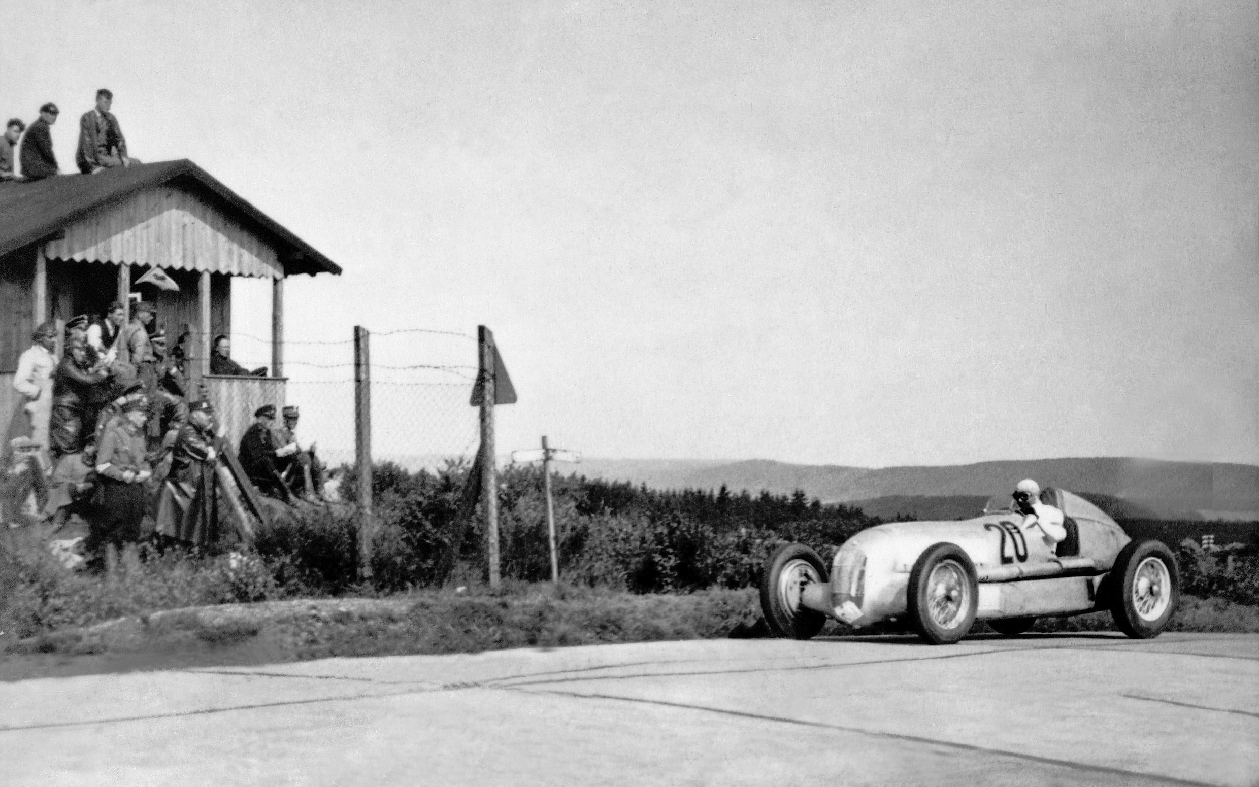 The following weekend was the Eifel Grand Prix at the Nurburgring and both teams were back and ready to race. Or were they? This was, again, a Formula Libre race but the Mercedes-Benz Team felt the need to comply with the 750 kg weight limit. In Alfred Neubauer, Mercedes-Benz Team Manager’s biography it was said that the stripping of car’s country color-compliant white paint and body filler was done to get it down to the weight limit. The Auto Union’s Type A racecar was silver for this race as it was for the AVUS race, and as it had been since it’s debut setting speed records in Italy.