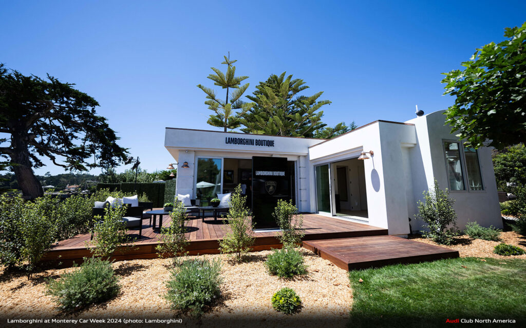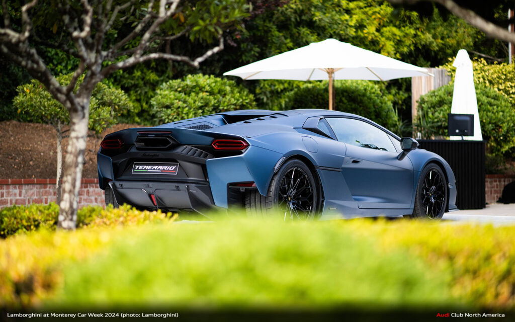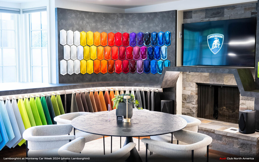 Sant’Agata Bolognese/Pebble Beach, California, 19 August 2024 – For Monterey Car Week 2024, Automobili Lamborghini welcomed VIP guests to the exclusive Lamborghini Lounge Monterey, a private villa transformed into a curated brand experience that not only reflects modern Italian heritage but embraces pushing boundaries in “driving humans beyond”. The newly unveiled Lamborghini Temerario[1] was featured at the Lamborghini Lounge in two new dedicated colors, Blu Marinus (blue) and Verde Mercurius (green), which for the first time will also be available at launch with the ‘Alleggerita’ (lightweight) package for customers more inclined to track driving.