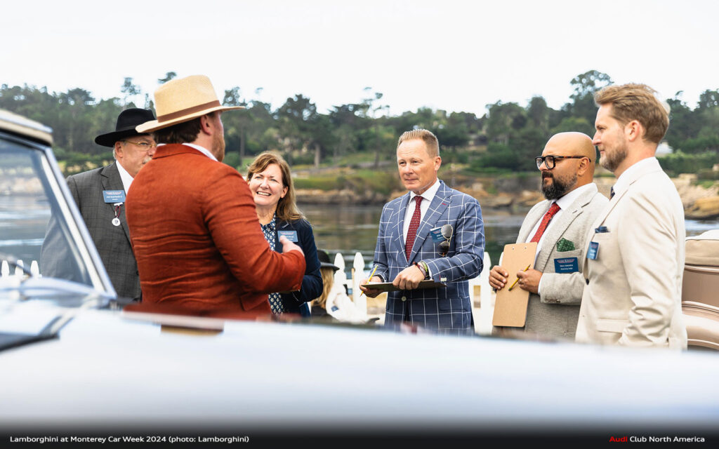 Each year the Pebble Beach Concours draws together thousands of the world’s automotive enthusiasts and experts who value the tradition of elegance in automobiles. On the 35th anniversary of the Pebble Beach Concept Lawn, which showcases the most anticipated concepts and dreams of tomorrow, the Lamborghini Temerario stood out to the crowd with its technical and stylistic innovation. The finest collector cars also gather on the 18th fairway of the renowned Pebble Beach Golf Links to compete to be named Best in Show. Both Stephan Winkelmann, Chairman and CEO of Automobili Lamborghini, along with Design Director, Mitja Borkert, returned again this year as Honorary Judges to serve in Sunday’s ceremonies.