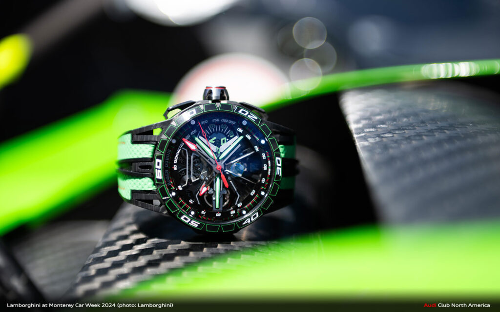 Lamborghini Squadra Corse showcased three motorsports models including the SC63, the first Lamborghini hybrid racecar prototype that debuted earlier this year in both FIA World Endurance Championship and IMSA WeatherTech SportsCar Championship. The SC63 was accompanied by the Huracán GT3 EVO2, designed and developed by Lamborghini Squadra Corse based on the Huracán STO, and the Huracán Super Trofeo EVO2, the most high-performance version ever designed to race in the one-make series. Additionally, Roger Dubuis, which is closely aligned with the world of racing, presented their latest super charged timepiece, the Excalibur Spider Flyback Chronograph. Inspired by supercar engineering, the timepiece races at full speed toward the future of Hyper Horology and a tribute to Roger Dubuis long-lasting partnership with Lamborghini Squadra Corse. For the occasion, Roger Dubuis has adorned the new 45mm timepiece in the same Verde Mantis shade that’s on the SC63 racecar.
