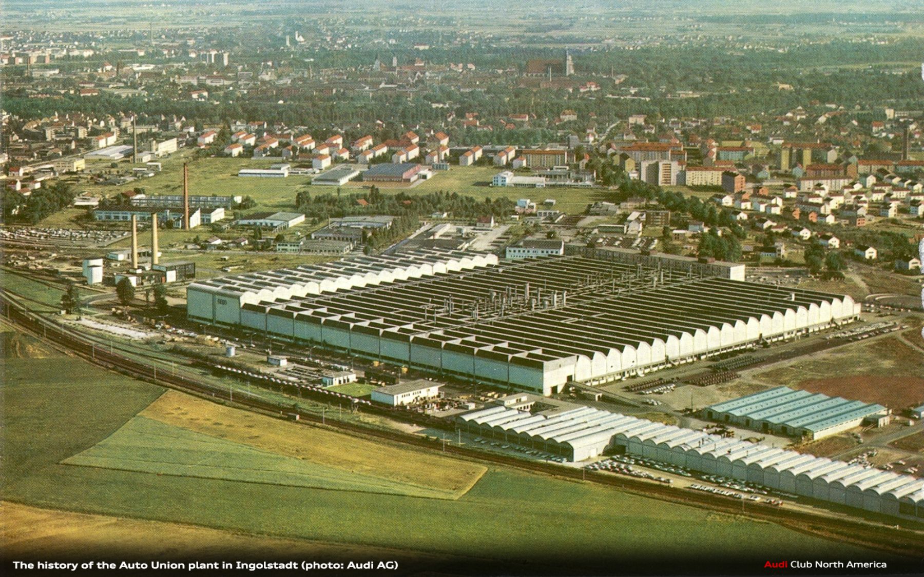 Audi, DKW, Horch, and Wanderer merged to form Auto Union AG in 1932. The new company was headquartered in Chemnitz. After the Second World War, the Soviet Union dismantled most of the four brands’ plants in East Germany. However, some former Auto Union employees were able to make a fresh start in the West as early as the end of 1945 – initially with a central depot for Auto Union spare parts in Ingolstadt. They worked for several years at various locations in downtown Ingolstadt until 1958, when the cornerstone was laid for a new Auto Union plant on the city’s outskirts. By December of that year, the building on Ettinger Strasse was structurally complete, and production of the DKW Junior began in the summer of 1959.