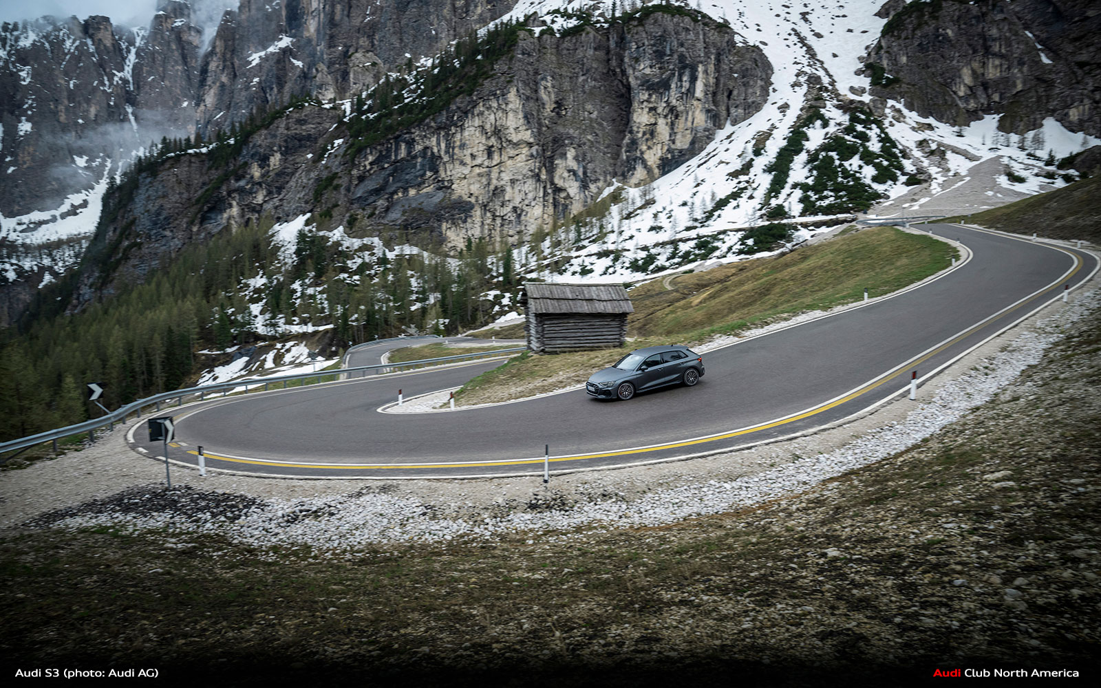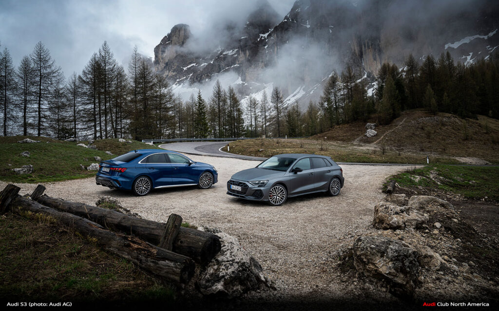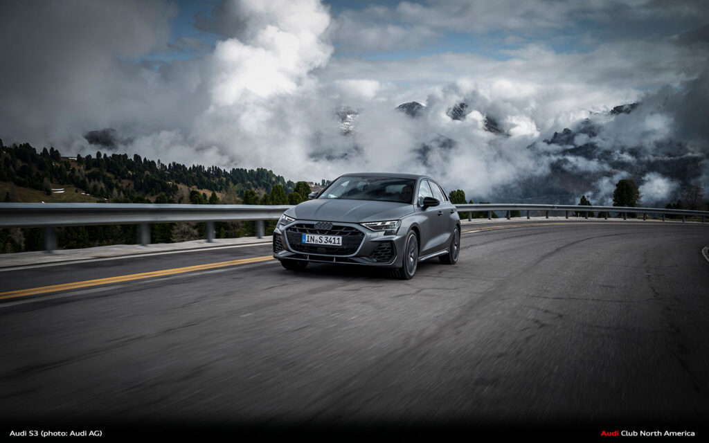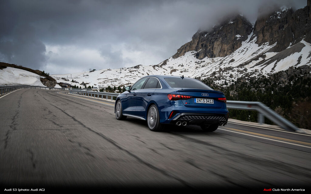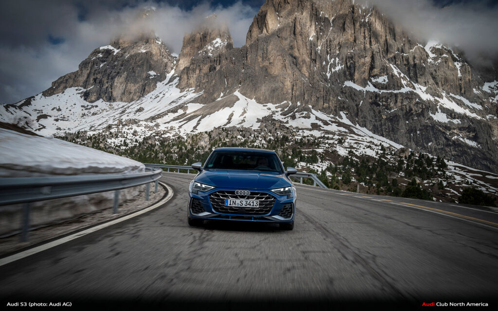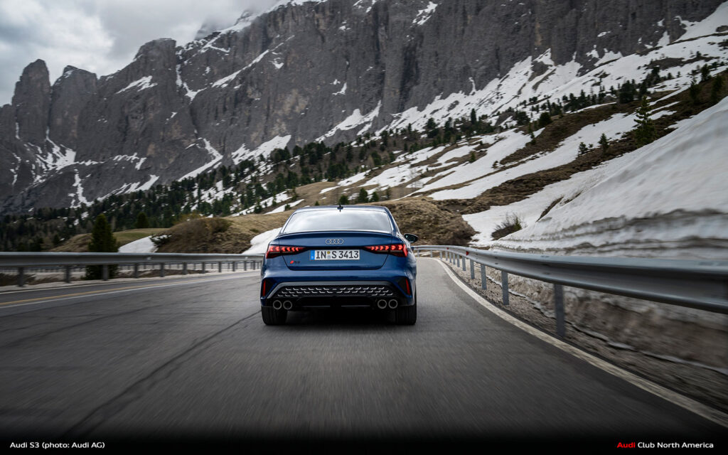 New Audi S3 on Winding Mountain Passes in the Dolomites