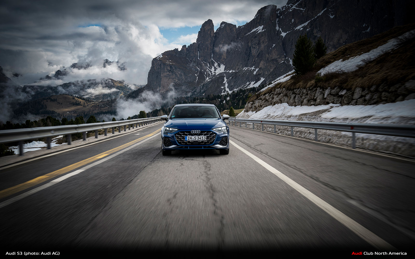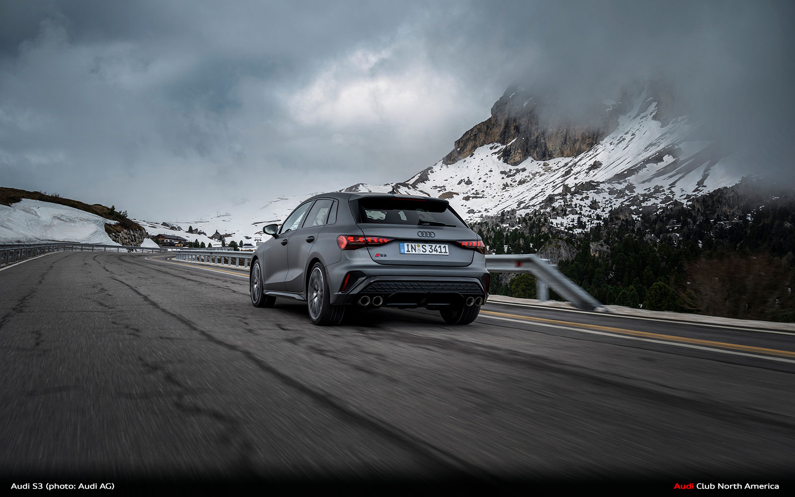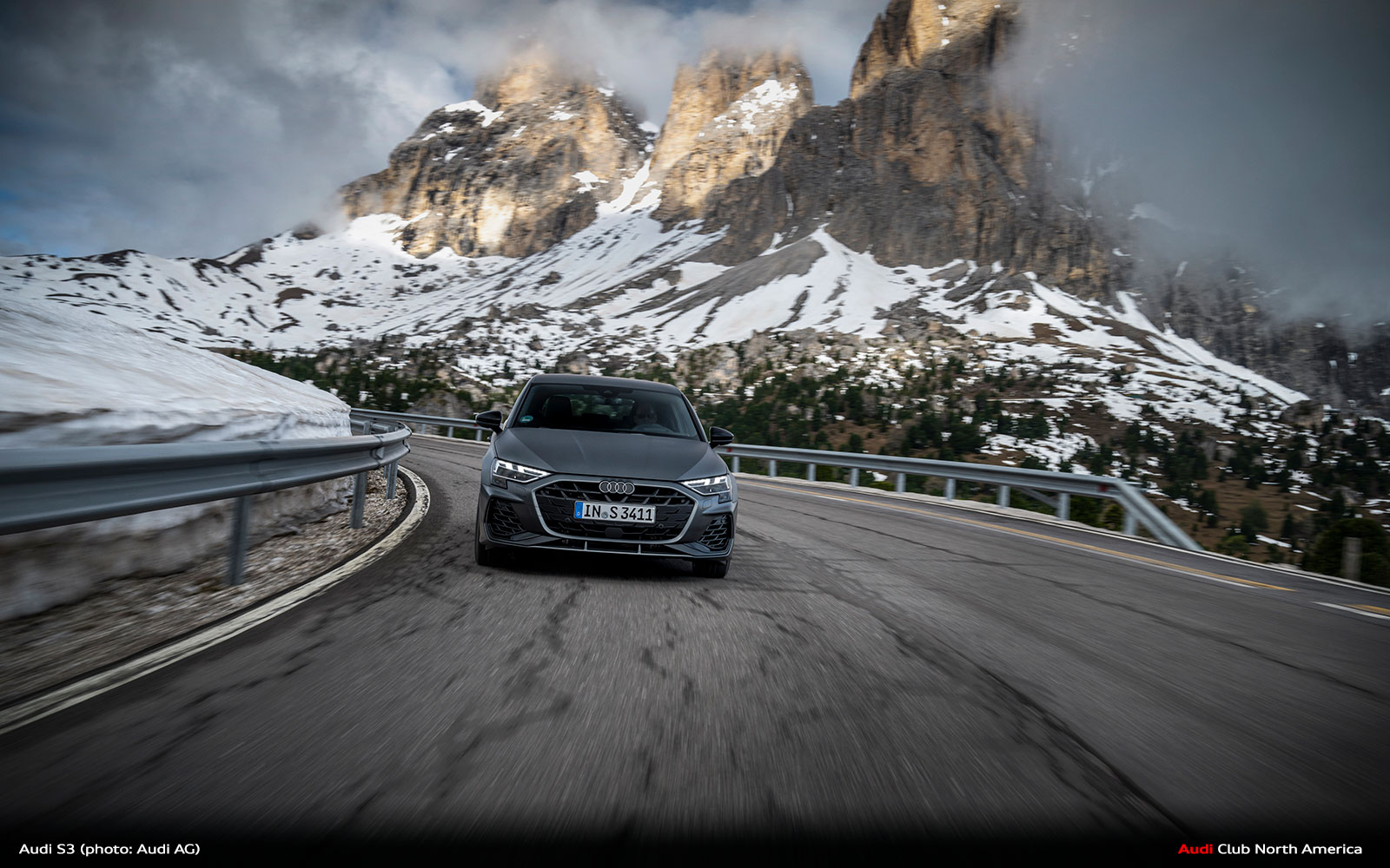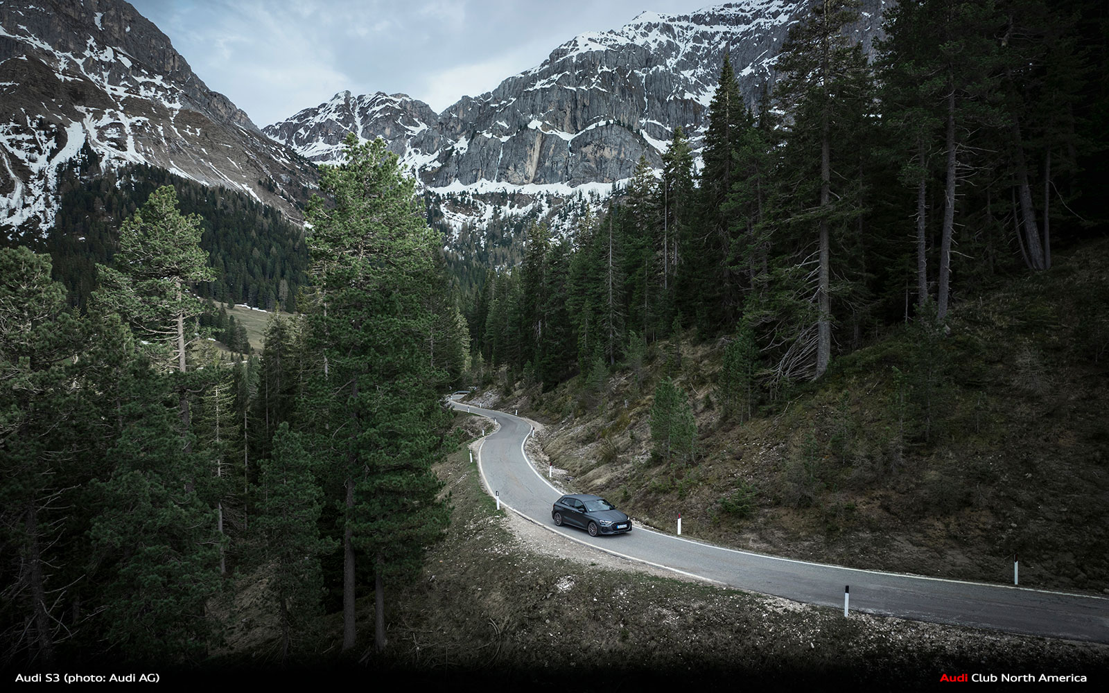 New Audi S3 on Winding Mountain Passes in the Dolomites