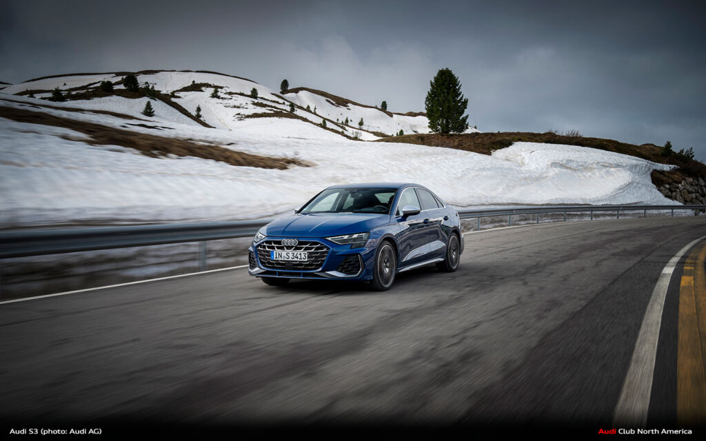 The new Audi S312 is more powerful and agile than ever before. Its increased four-cylinder turbo engine with 333 hp and 420 Nm, combined with the torque splitter, the sportier front axle and the improved steering, ensures an emotional driving experience.