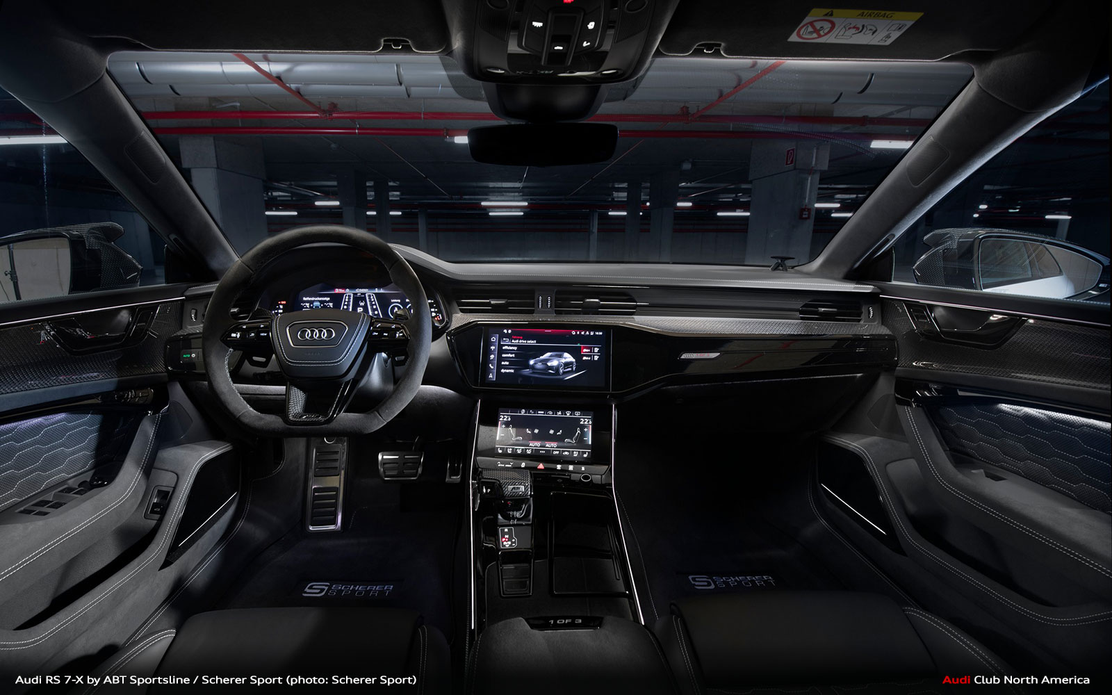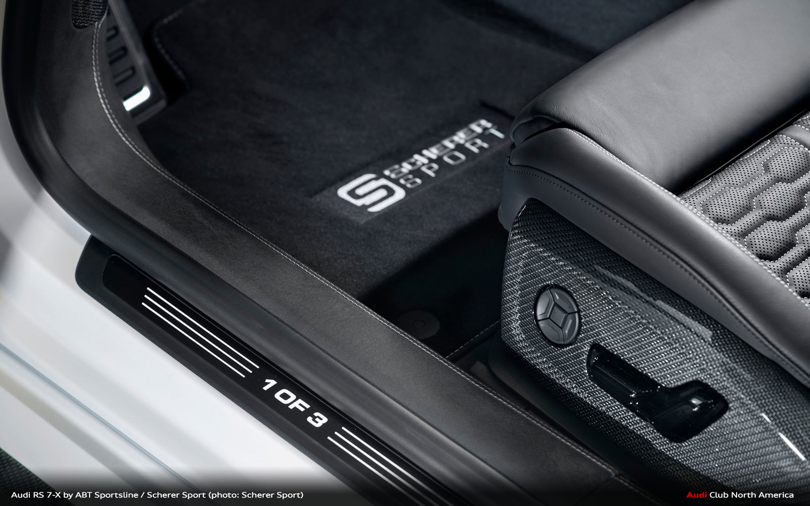 The Scherer Group, to which Scherer Sport belongs as a sub-brand for high-performance vehicles and motorsport, has been working together for several years as one of the largest car dealers in Germany with ABT Sportsline – the leading refiner for vehicles of the Audi and Volkswagen Group based in Kempten in the Allgäu. This partnership has already led to successful special models such as the RS4-X and the RS6-X. With the RS7-X, this legacy has now been continued. Christian Scherer paid special attention to the design of the interior, in which he realized extraordinary ideas with the support of the performance optimizer ABT Sportsline.