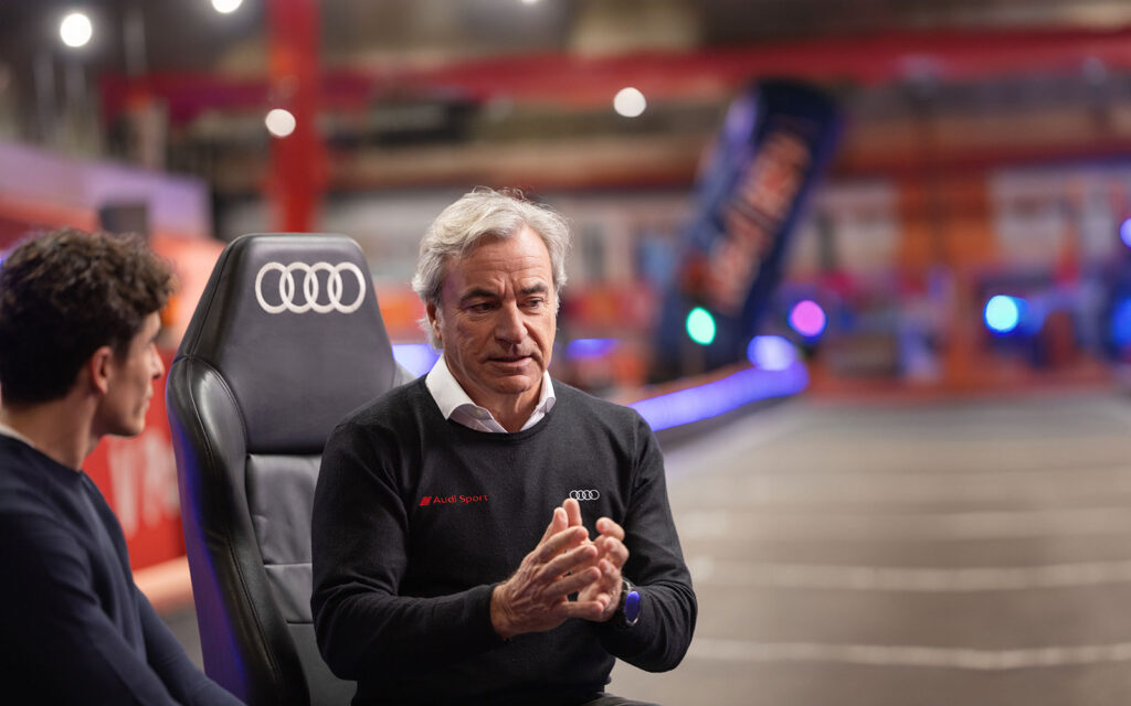 [source: Audi Spain] Madrid, Spain – Carlos Sainz, champion of the Dakar 2024 Rally with Audi Sport; Marc Márquez, driver of Team Gresini Racing of…