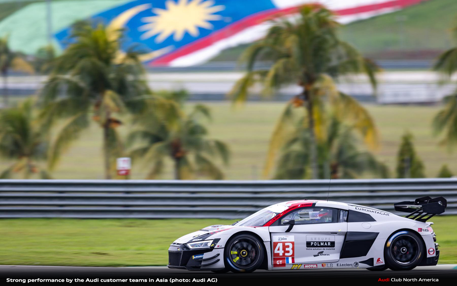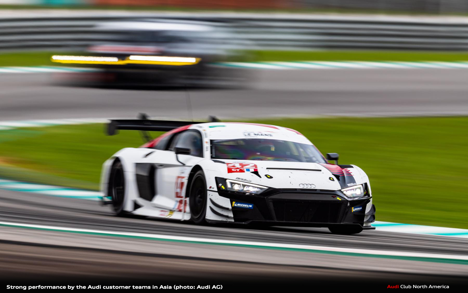 One-two-three victory and championship lead in Asia: Two Audi customer teams have made a convincing start to the new Asian Le Mans Series season. At the opening race in Sepang, Saintéloc Racing prevailed in the GT class with the Audi R8 LMS. Bronze driver Alban Varutti made a strong start from pole position. The two Audi Sport drivers Christopher Haase and Gilles Magnus then also delivered flawless work in the cockpit of the number 42 car and celebrated their first victory of the season with Varutti. When a storm hit the race track in Malaysia, race control stopped the four-hour competition a quarter of an hour before the scheduled end. With Attempto Racing and the driver pairing of Alex Aka/Andrey Mukovoz/Dylan Pereira, another Audi customer team took second place. Behind them, Audi Sport driver Dennis Marschall rounded off the success with his Saintéloc teammates Paul Evrard and Zhou Bihuang to complete an Audi one-two-three. One day later, Haase/Magnus/Varutti were beaten by a Porsche driver team by just 0.9 seconds in the second four-hour race. After this second place, Haase, Magnus and Varutti lead the GT standings by eleven points ahead of the second round in Dubai in February.