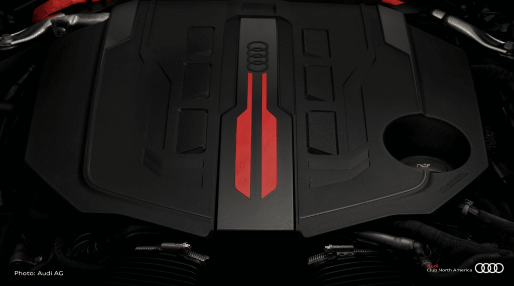 The 2.9-liter twin-turbo V6 outputting 503 horsepower is combined with a 130-kW electric motor. Power is fed into a hybridized eight-speed gearbox, and a completely new rear transaxle. Two variable-geometry turbochargers provide boost; the piping is optimized for high pressures and minimal losses. This means the engine responds much more eagerly to throttle inputs. Additionally, Audi has upgraded fuel delivery through higher injection pressure, increasing efficiency and providing more performance with lower emissions.