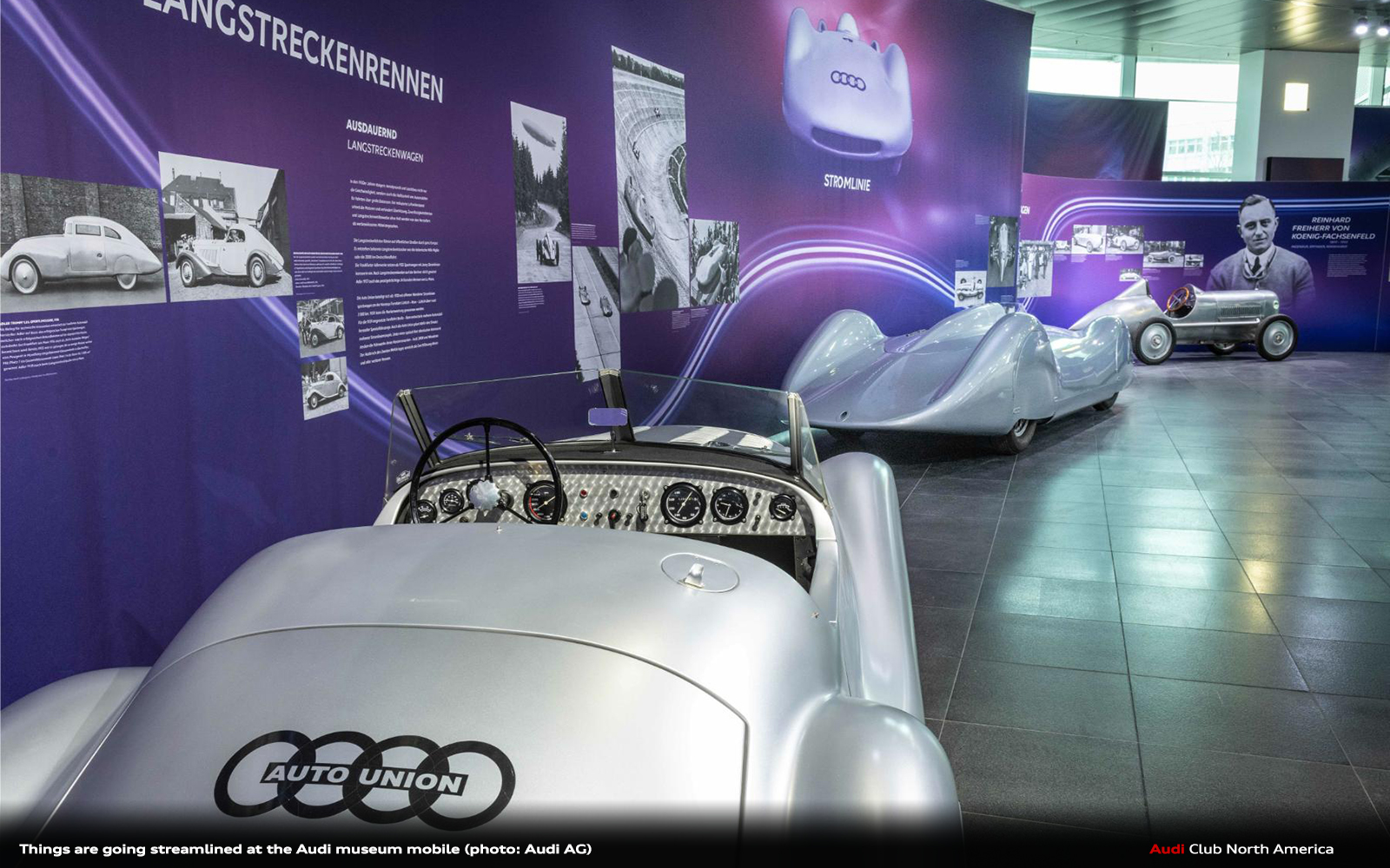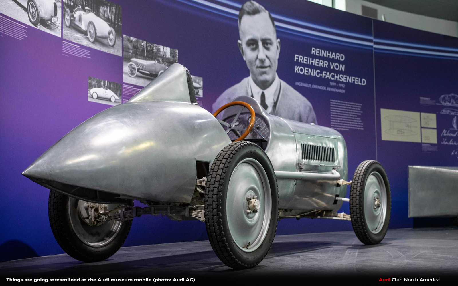 The new special exhibition “Streamlined” at the Audi museum mobile presents the research and development, the driving personalities, and the basic aerodynamic concepts of the period up to 1945. Rare and unique vehicles are also on display – more than a dozen large exhibits. They document the remarkable combination of efficiency, sustainability, and design unique to aerodynamics.