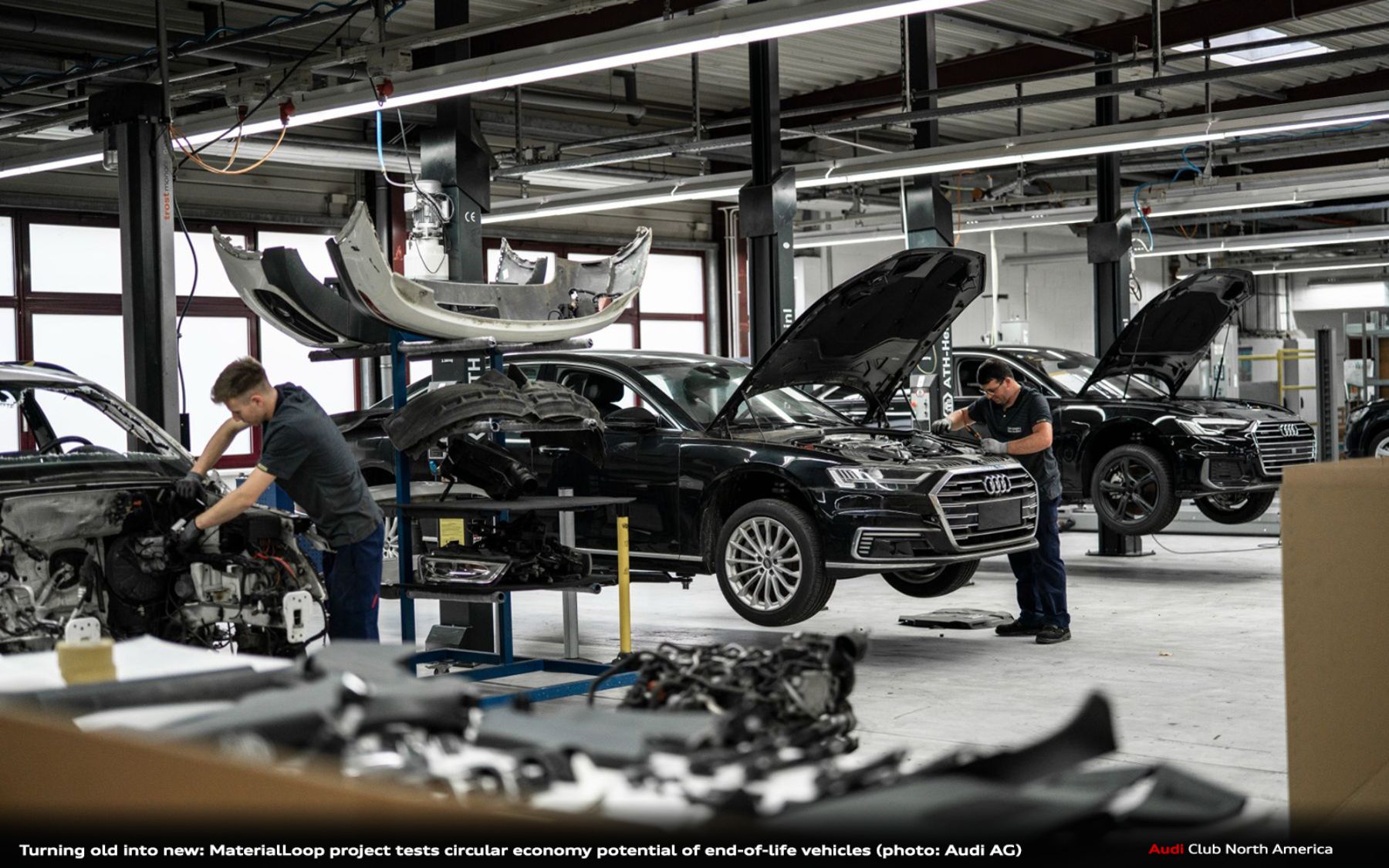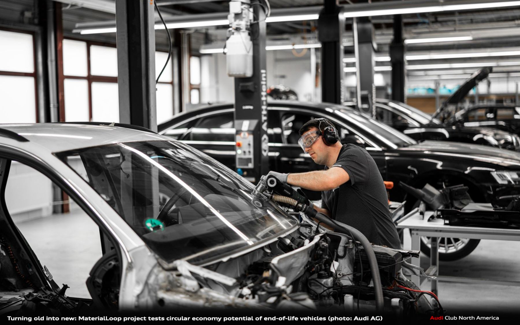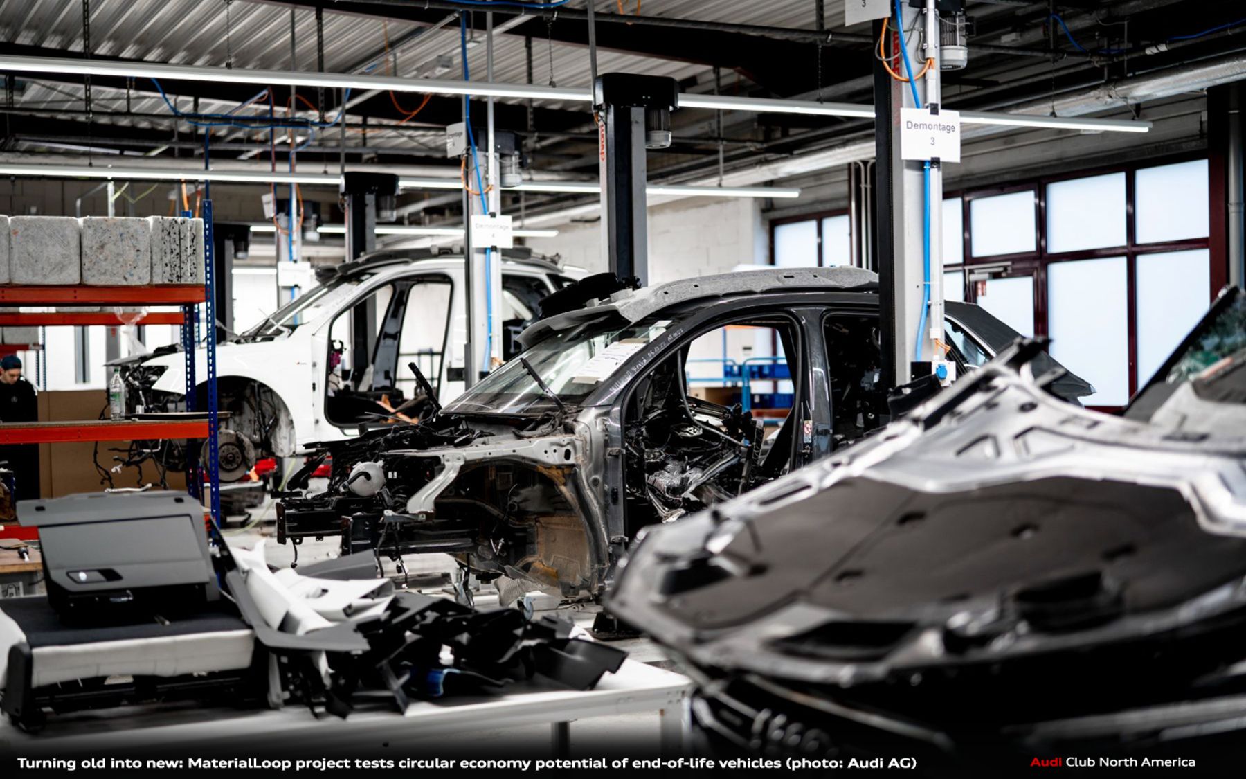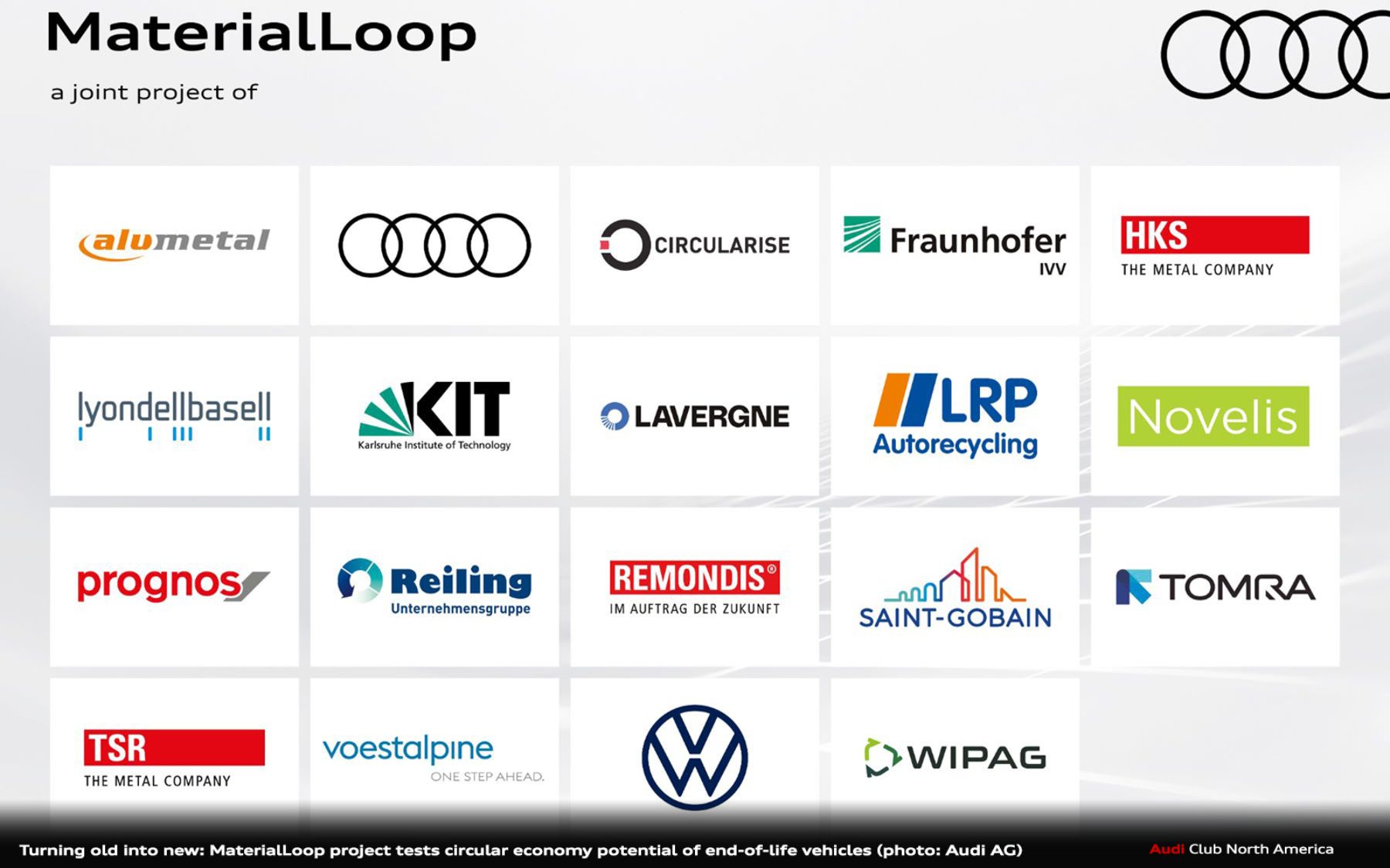 - Audi is building knowledge to close the loop on materials such as steel, aluminum, plastic, and glass