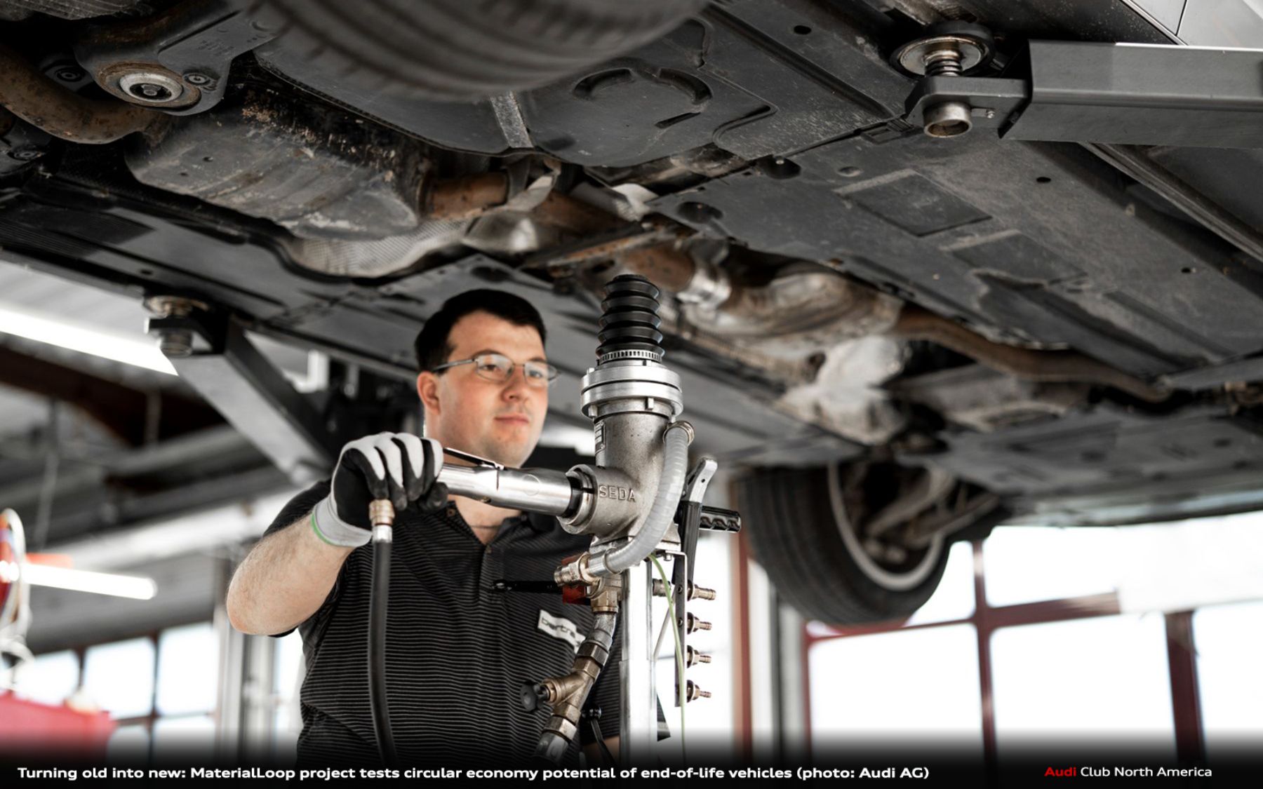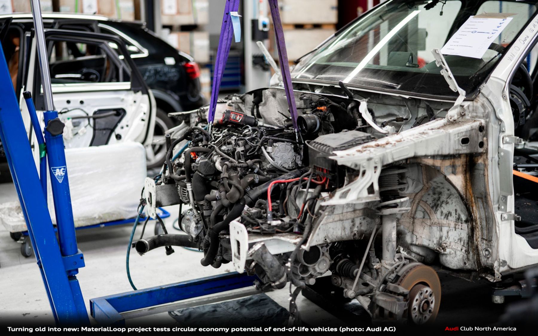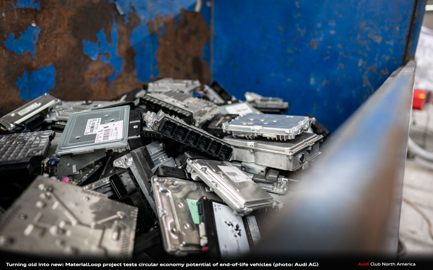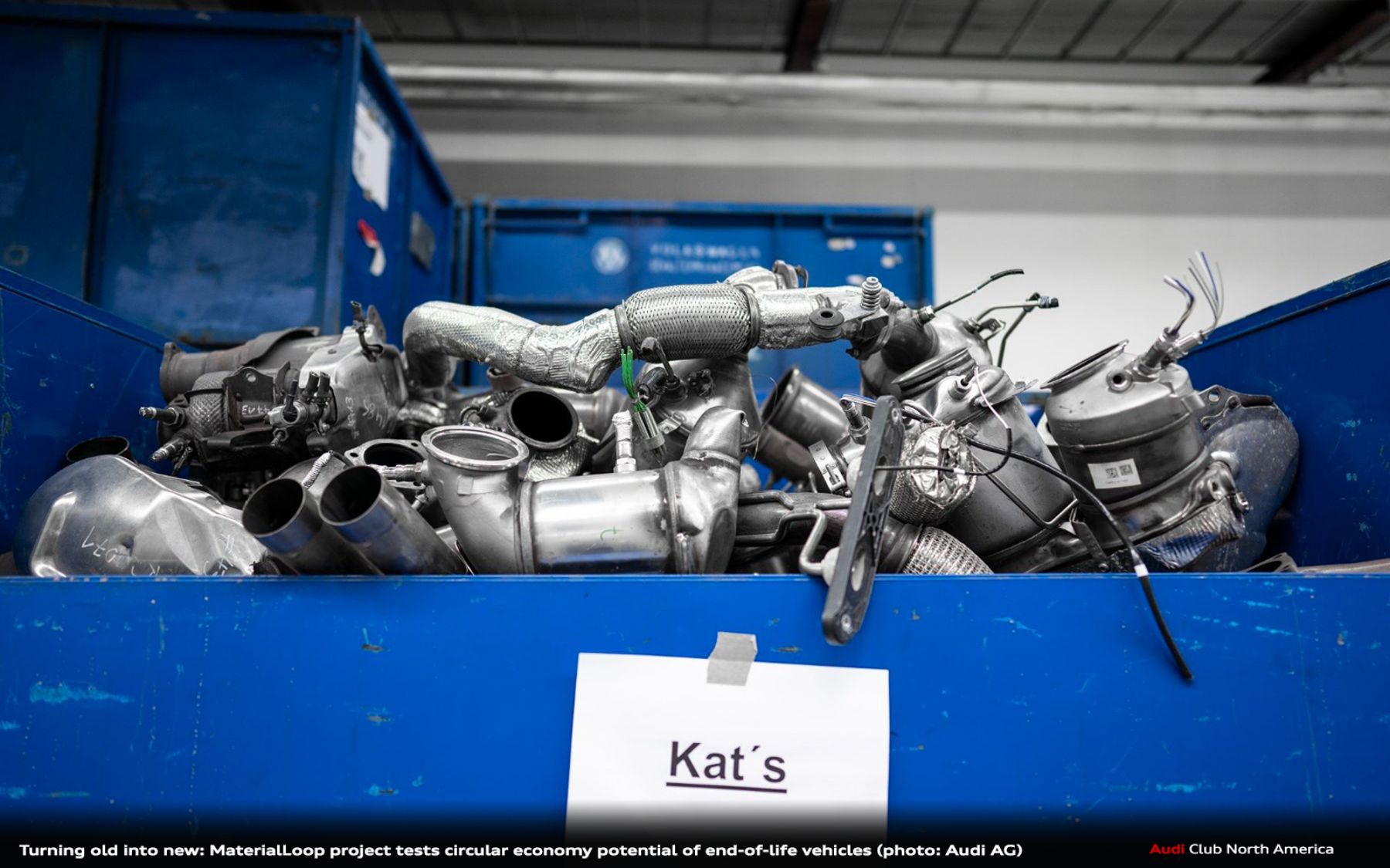 - Audi is building knowledge to close the loop on materials such as steel, aluminum, plastic, and glass
