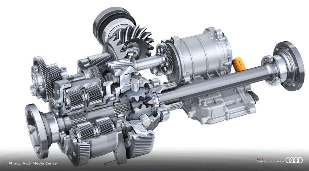Traditional torque vectoring systems rely heavily on mechanical or clutch-based setups, which are often limited to operating under load. Audi’s new approach changes the game. By integrating a high-voltage electric motor directly into the rear transaxle, the RS 5 can actively distribute torque regardless of engine output or driving state.
