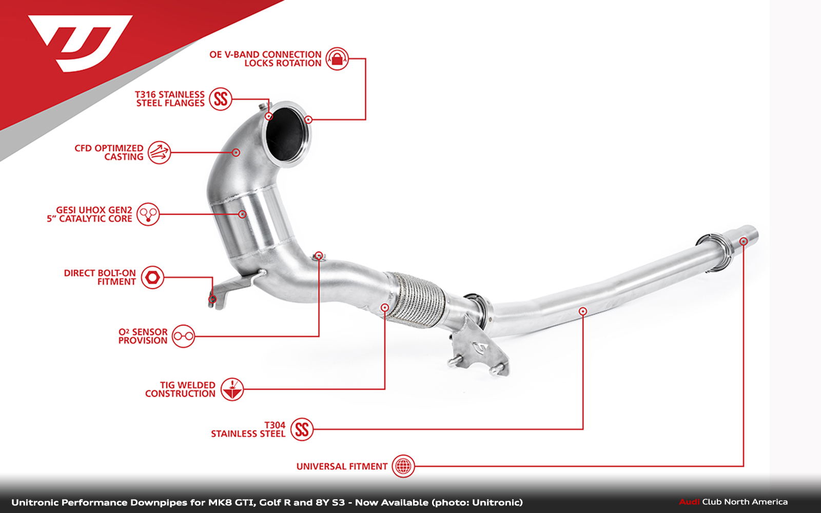 Unitronic Performance Downpipes for Audi 8Y S3 and Volkswagen MK8 Gti and Golf R Now Available