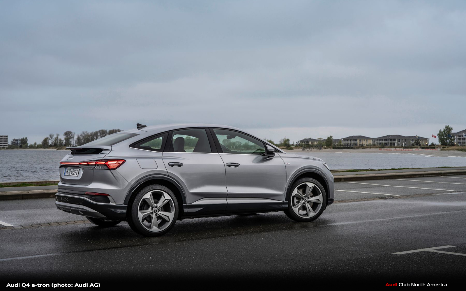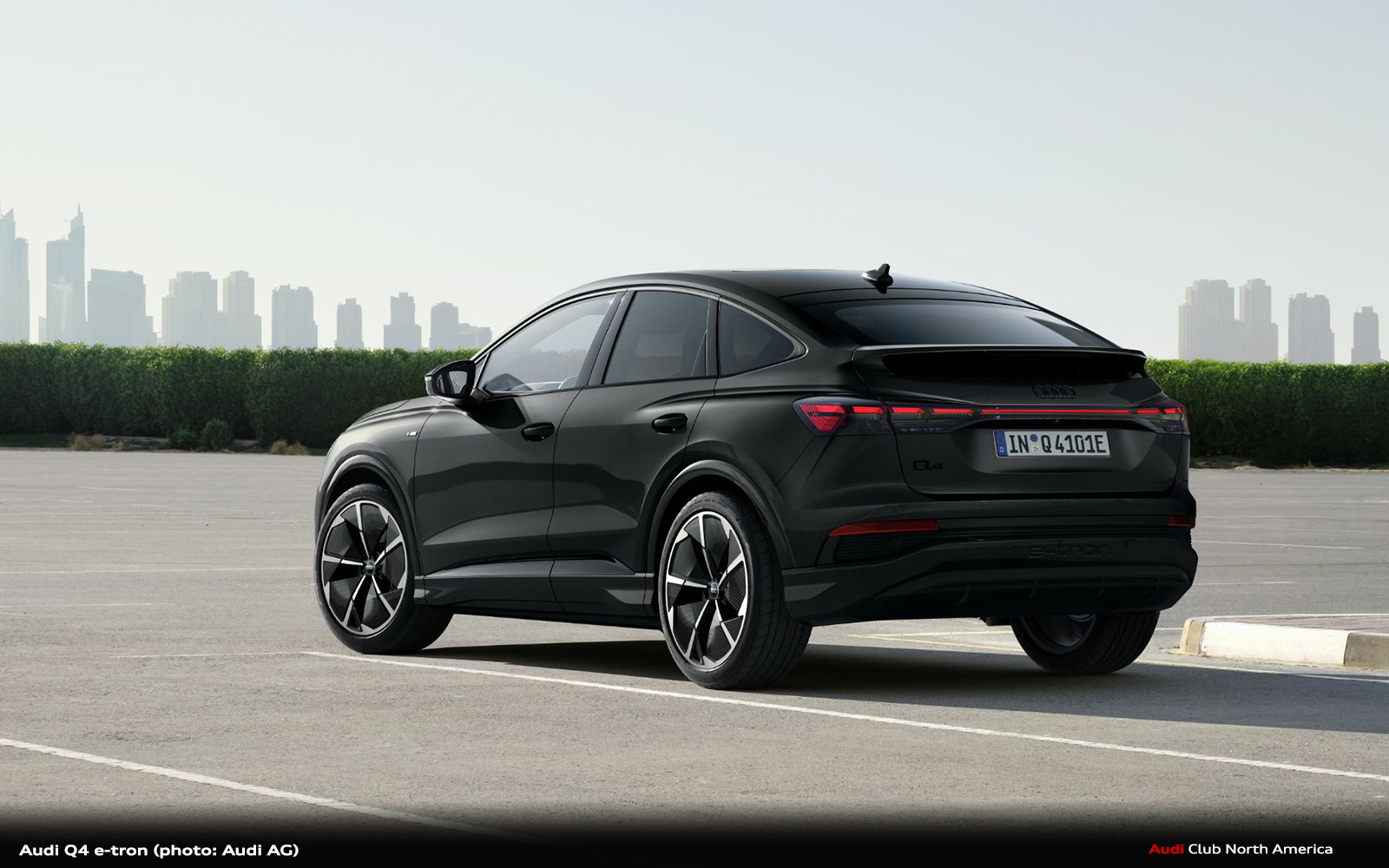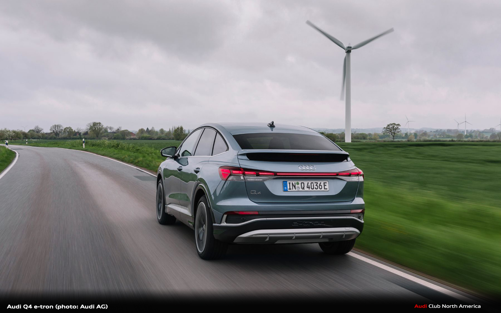 The Audi Q4 45 e-tron and the Audi Q4 Sportback 45 e-tron with rear-wheel drive produce 210 kW (286 PS) and accelerate from zero to 100 km/h (62 mph) in 6.7 seconds. The Audi Q4 45 e-tron quattro and the Audi Q4 Sportback 45 e-tron quattro with 210 kW (286 PS) take 6.6 seconds. The top-of-the-range models Audi Q4 55 e-tron quattro and Audi Q4 Sportback 55 e-tron quattro models with 250 kW (340 PS) accelerate from a standstill to highway speed in a mere 5.4 seconds. The top speed for all models is now 180 km/h (112 mph).