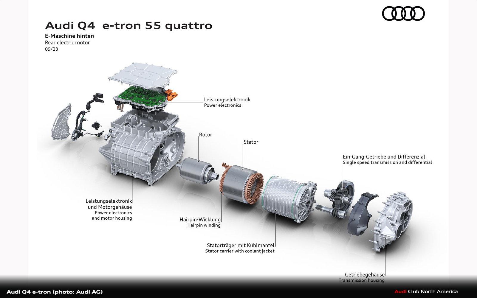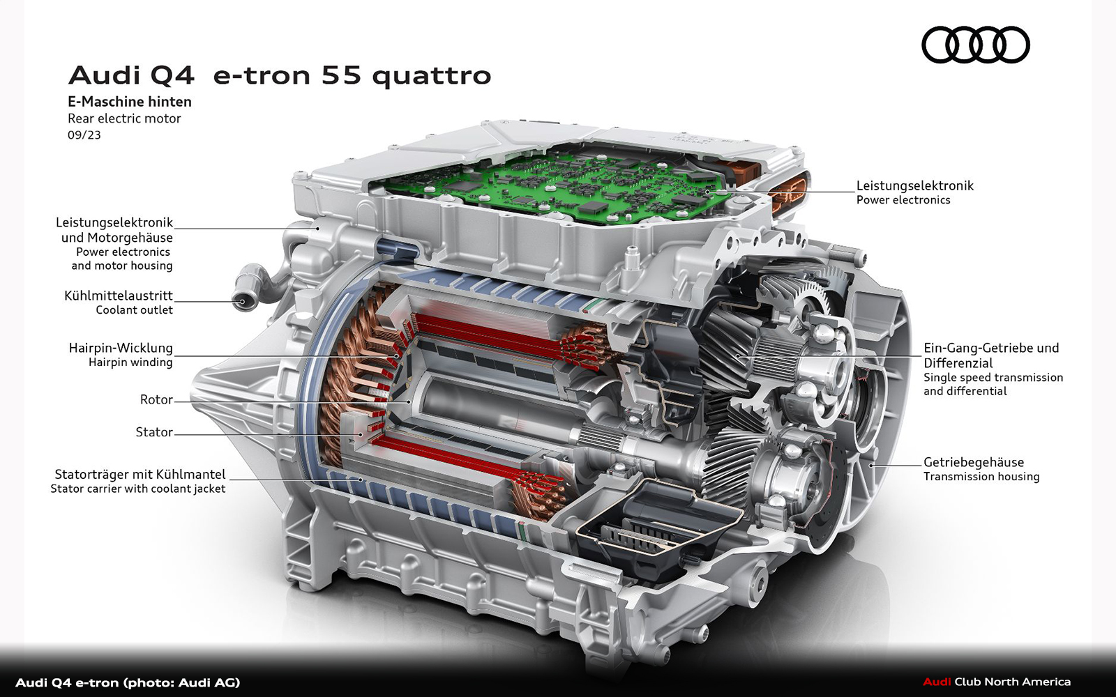 For both rear-wheel drive and quattro all-wheel drive, all Audi Q4 e-tron models now feature a permanently excited synchronous machine (PSM) on the rear axle.